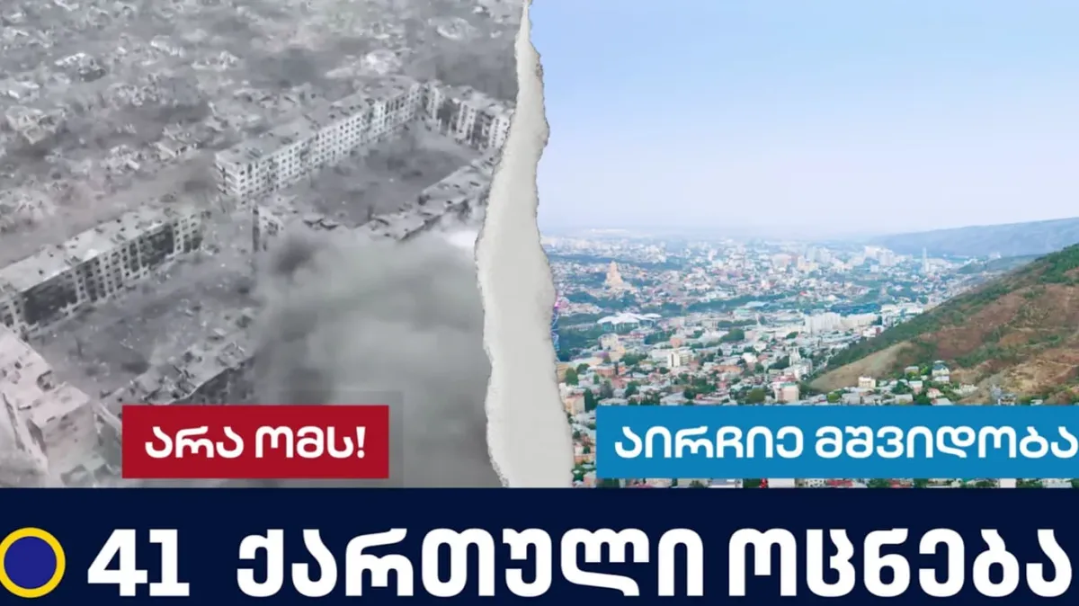 В видео «Грузинской мечты» использованы черно-белые кадры разрушенных городов Украины с надписью «Нет войне!» — против цветных изображений новых и отремонтированных зданий в Грузии со слоганом «Выбери мир».