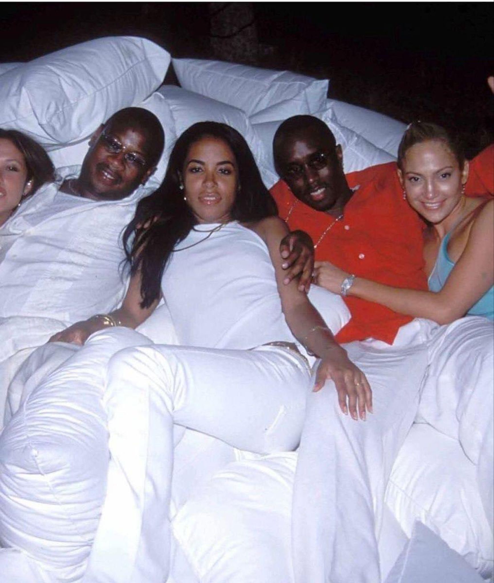 Фото Пи Дидди с певицами Алией и Дженнифер Лопес с одной из «белых вечеринок»