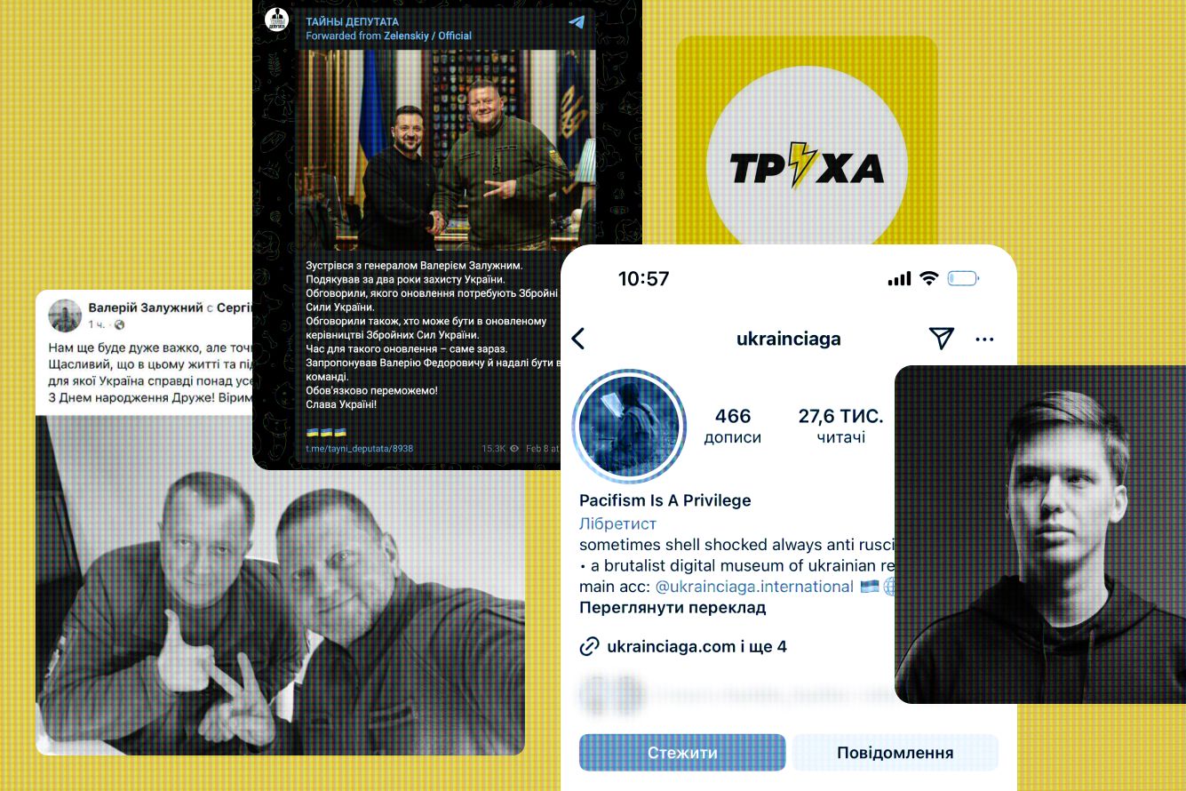 Среди других составных частей этой «очень специфической инфраструктуры», сложившейся после 24 февраля, украинская независимая журналистка, с которой поговорила «Медуза», называет множество разных инструментов — от официальных и неофициальных телеграм-каналов украинских политиков до дружественных офису Зеленского общественных платформ вроде объединения художников Ukrainciaga. Эти каналы, по мнению собеседницы «Медузы», передают реальные новости, но одновременно помогают властям распространять выгодные государству «информационные посылы»: