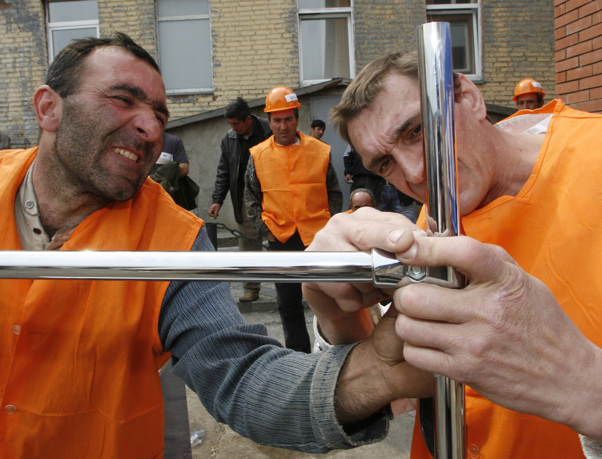 Фото: Рабочие собирают мебель во время дня «Работников — мигрантов» в Красноярске в 2009 году. Иллюстративное фото. REUTERS/Ilya Naymushin