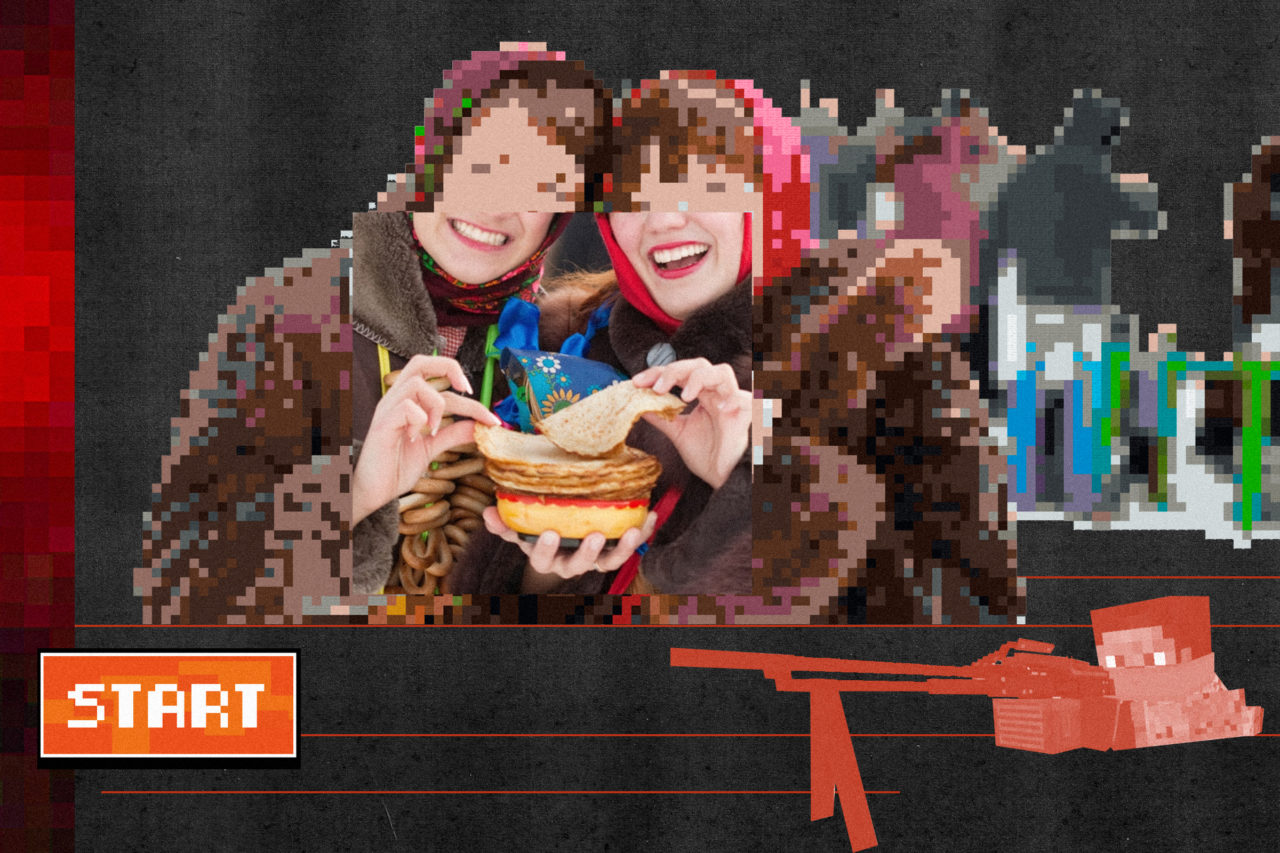 В марте 2024 года на Красной площади россияне отмечали Масленицу. Всю праздничную неделю возле Кремля пекли блины, играли в жмурки, проводили конкурсы. Провластная общественница Екатерина Мизулина в ярко-розовом костюме поздравляла столпившихся вокруг подростков, а пропагандист Отар Кушанашвили играл с гостями в перетягивание каната. Но гуляющие по центру Москвы ничего не заметили — все это происходило в онлайн-мире игры «Майнкрафт». Посетители управляли прямоугольными фигурками, Красная площадь состояла из крупных параллелепипедов, как и весь мир этой видеоигры, а транслировали праздник в VK известные игровые блогеры.