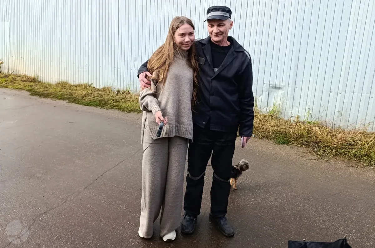 Alexey Moskalyov, who was sentenced to two years in prison for “discrediting the Russian army” in March 2023, was met by his teenage daughter Maria upon his release from a penal colony in central Russia’s Tula region.