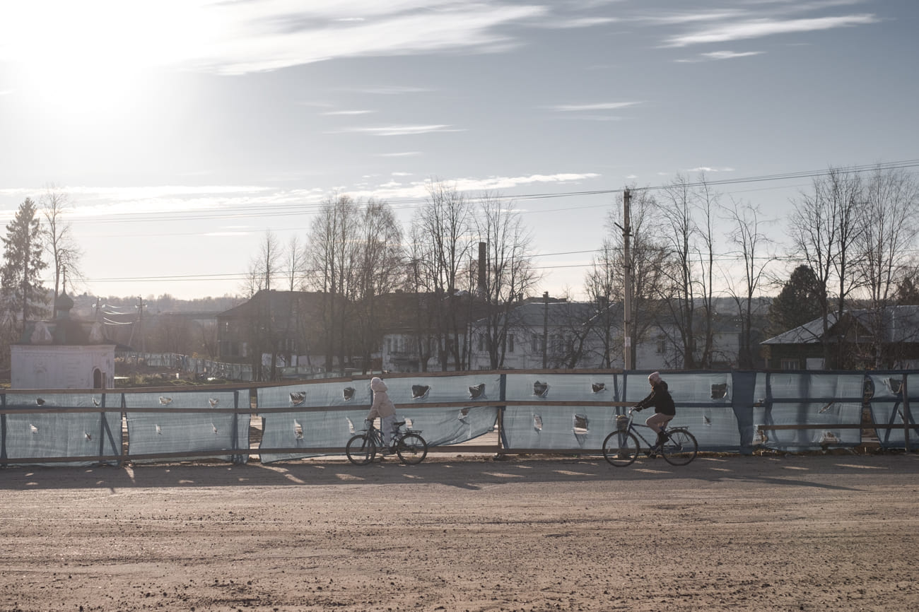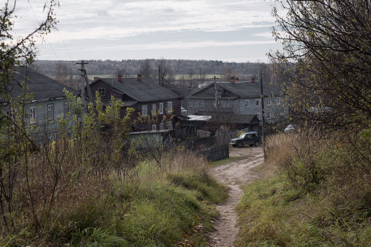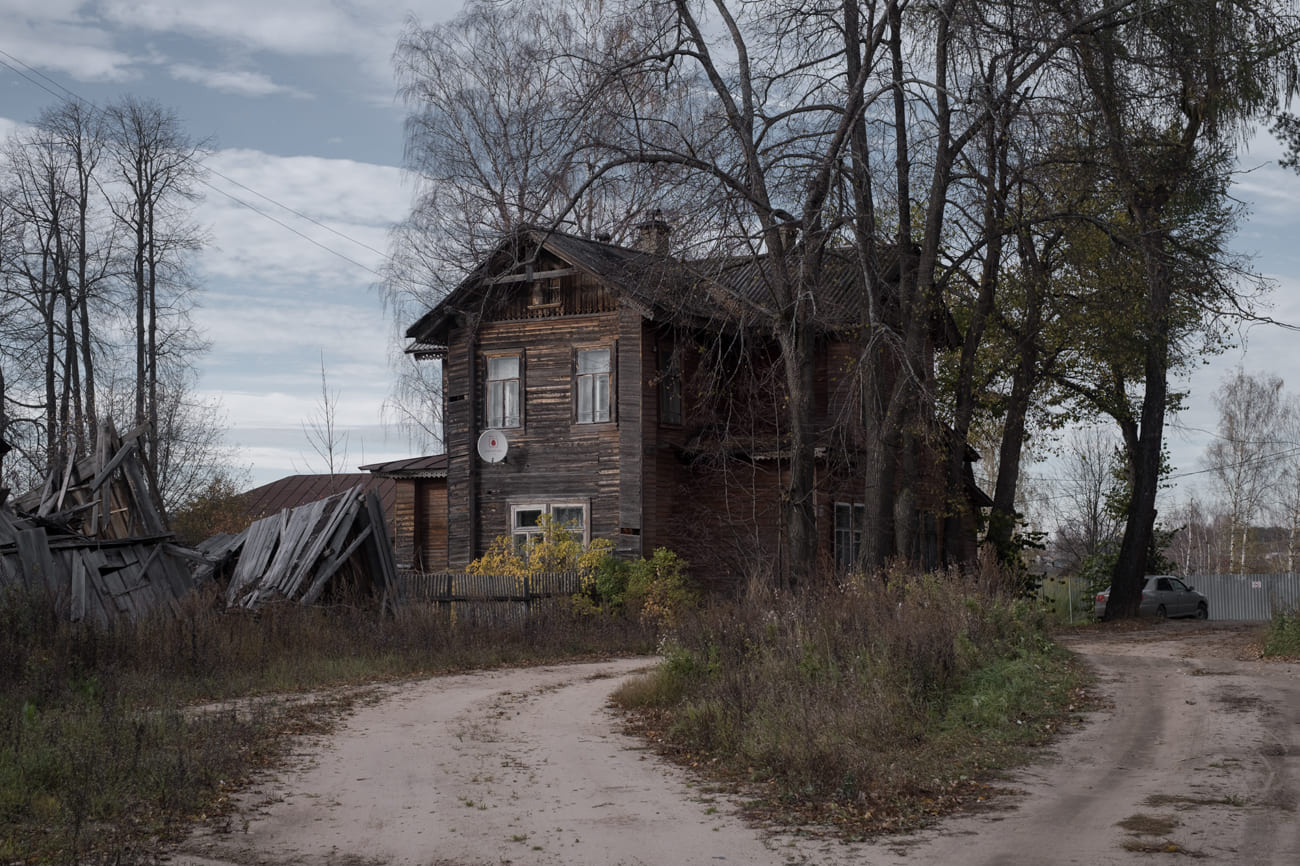 За несколько часов до этого разговора я бродил по Кологриву один. На сообщения и звонки мне по-прежнему никто не отвечал, так что я решил импровизировать, но прогулка не принесла мне особых впечатлений. В этом маленьком, на три тысячи жителей городке и правда было бы легко укрыться от мировых катаклизмов, потому что тут, по первому впечатлению, вообще ничего не происходит. Этакий идеал русской провинции в стереотипных представлениях о ней: широкая и пустая главная площадь, пруд, пара старых храмов и несколько тенистых центральных улиц с деревянными особняками столетней давности, немалая часть из которых заколочены или вовсе заброшены. Кажется, в Кологриве ничего не изменилось с тех пор, как Киса Воробьянинов уехал отсюда, чтобы навестить свою покойную бабушку.