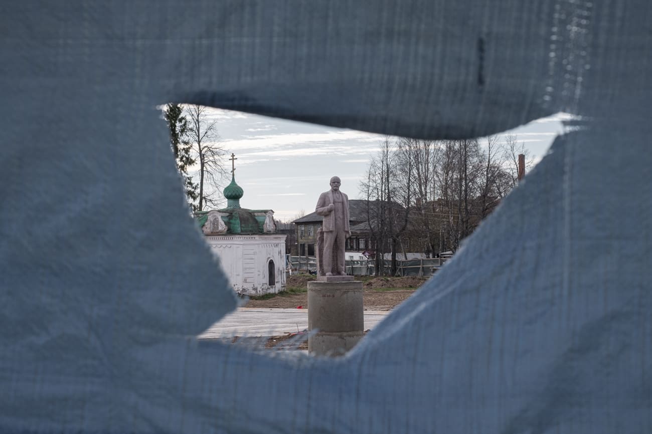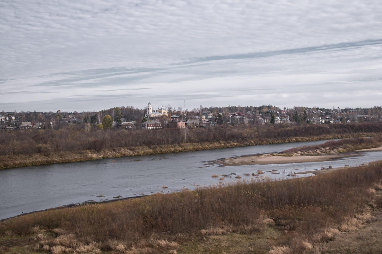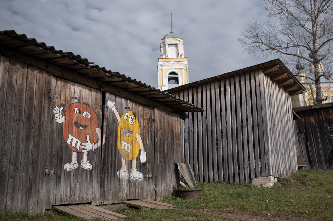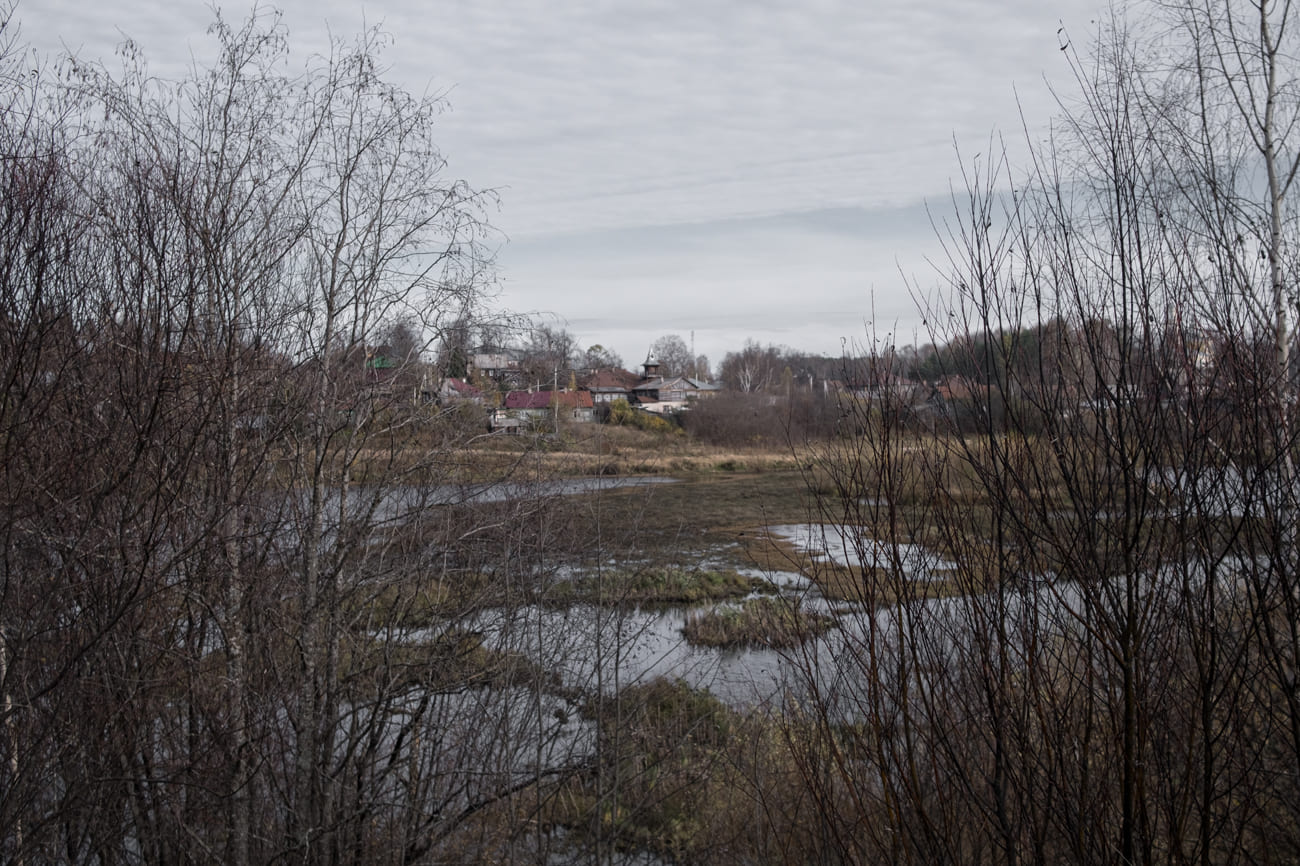 За несколько часов до этого разговора я бродил по Кологриву один. На сообщения и звонки мне по-прежнему никто не отвечал, так что я решил импровизировать, но прогулка не принесла мне особых впечатлений. В этом маленьком, на три тысячи жителей городке и правда было бы легко укрыться от мировых катаклизмов, потому что тут, по первому впечатлению, вообще ничего не происходит. Этакий идеал русской провинции в стереотипных представлениях о ней: широкая и пустая главная площадь, пруд, пара старых храмов и несколько тенистых центральных улиц с деревянными особняками столетней давности, немалая часть из которых заколочены или вовсе заброшены. Кажется, в Кологриве ничего не изменилось с тех пор, как Киса Воробьянинов уехал отсюда, чтобы навестить свою покойную бабушку.