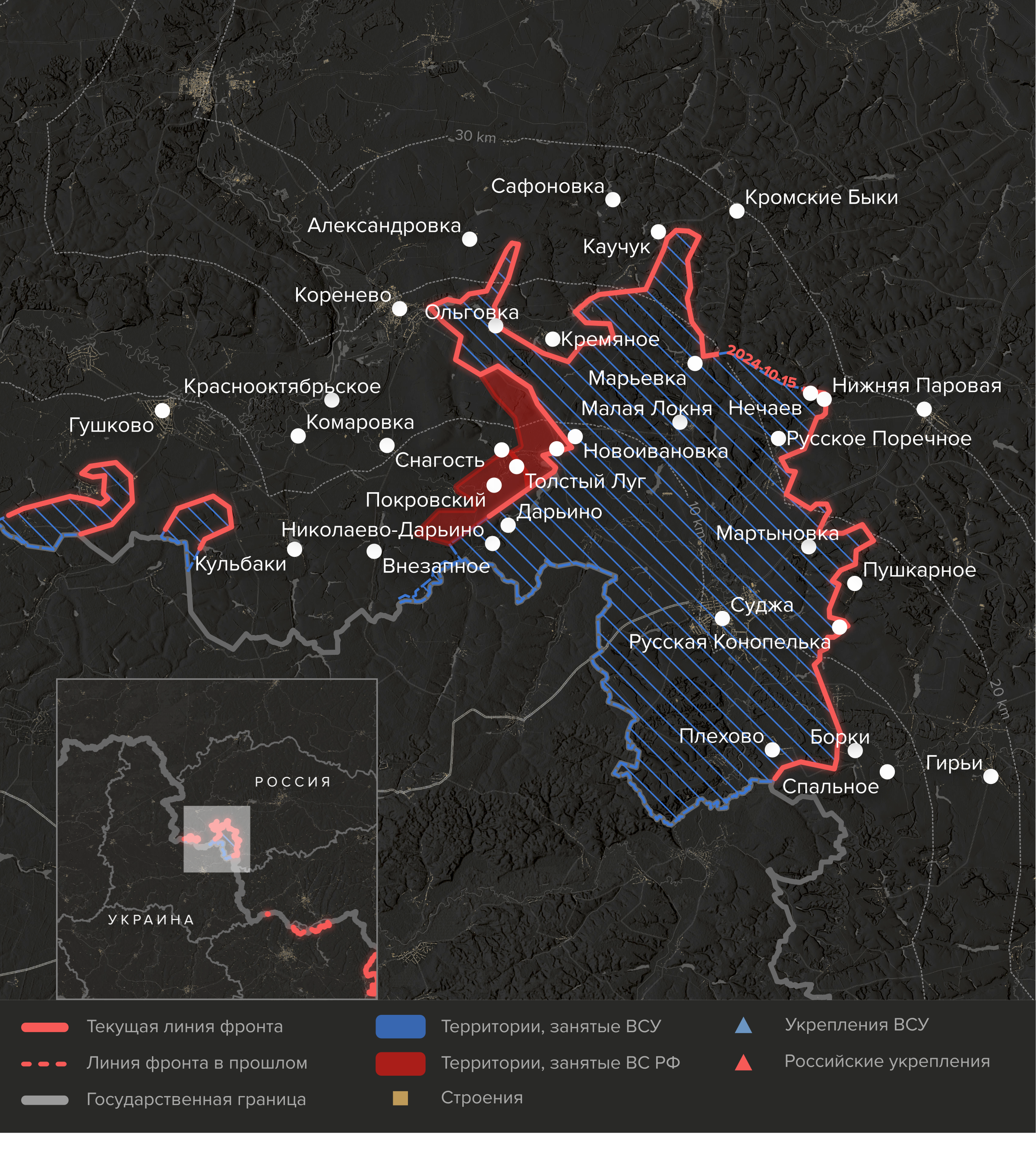 Стоит ли ждать скорого ухода украинских войск с территории РФ? Карта боев на 15 октября
