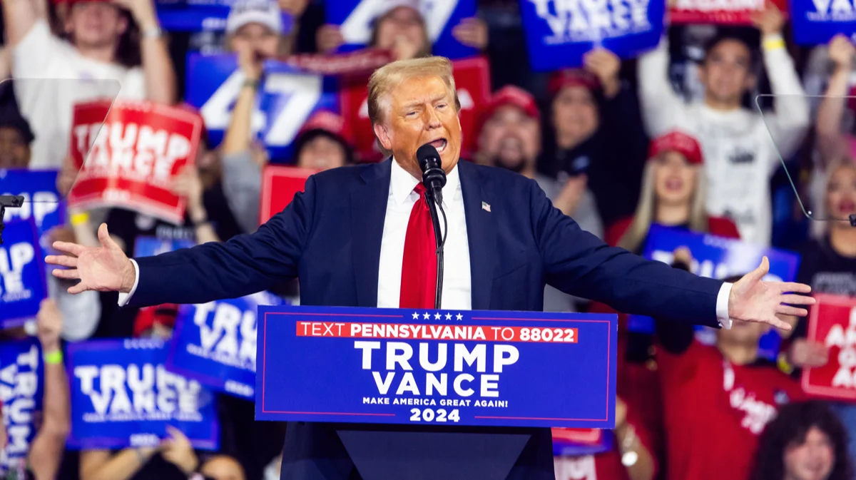 Дональд Трамп на предвыборном митинге в Рединге, штат Пенсильвания, США, 9 октября 2024 года. Фото: Jim Lo Scalzo / EPA-EFE