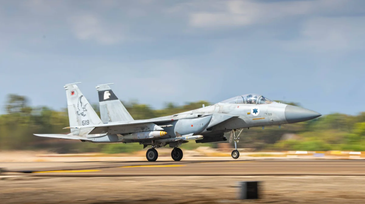 Истребитель вооруженных сил Израиля взлетает с военной базы во время нанесения ударов по Ливану, 24 сентября 2024 года. Фото: IDF / GPO / SIPA / Scanpix / LETA