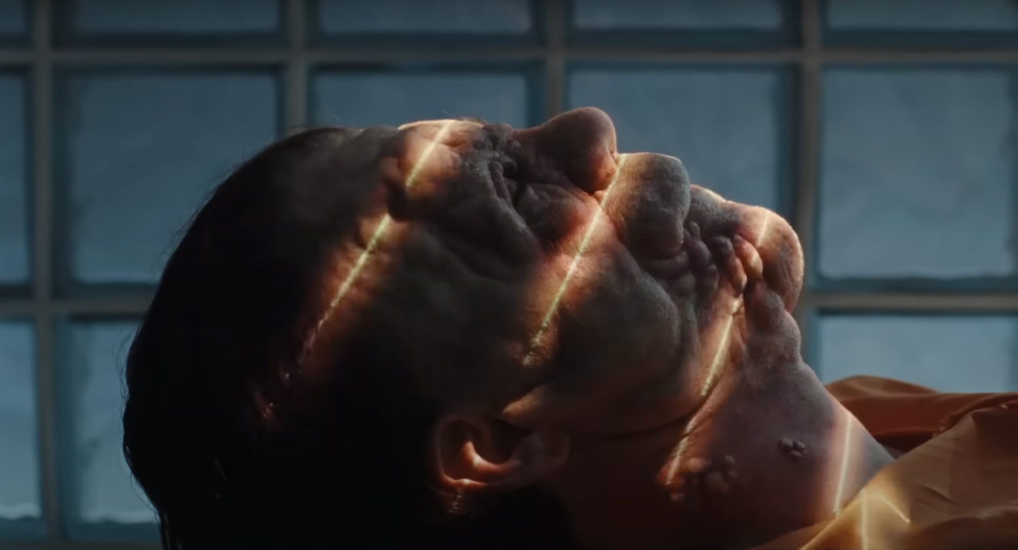 «Другой человек» состоит из трех интонационно и тематически различных актов. Первый — унизительное знакомство и неудавшийся роман Эдварда с Ингрид. Повседневную жизнь актера-неудачника пронизывает кафкианский абсурд: пока он всматривается в обучающее видео на ютьюбе, тщетно пытаясь научиться свистеть, в его потолке возникает черная гниющая дыра, а сосед по подъезду кончает с собой. Какой уж тут флирт… Зрителям эта жестокая версия «Красавицы и чудовища» напомнит недавний клаустрофобический кошмар «Все страхи Бо», сам Эдвард неслучайно упомянет «Смерть коммивояжера» Артура Миллера.