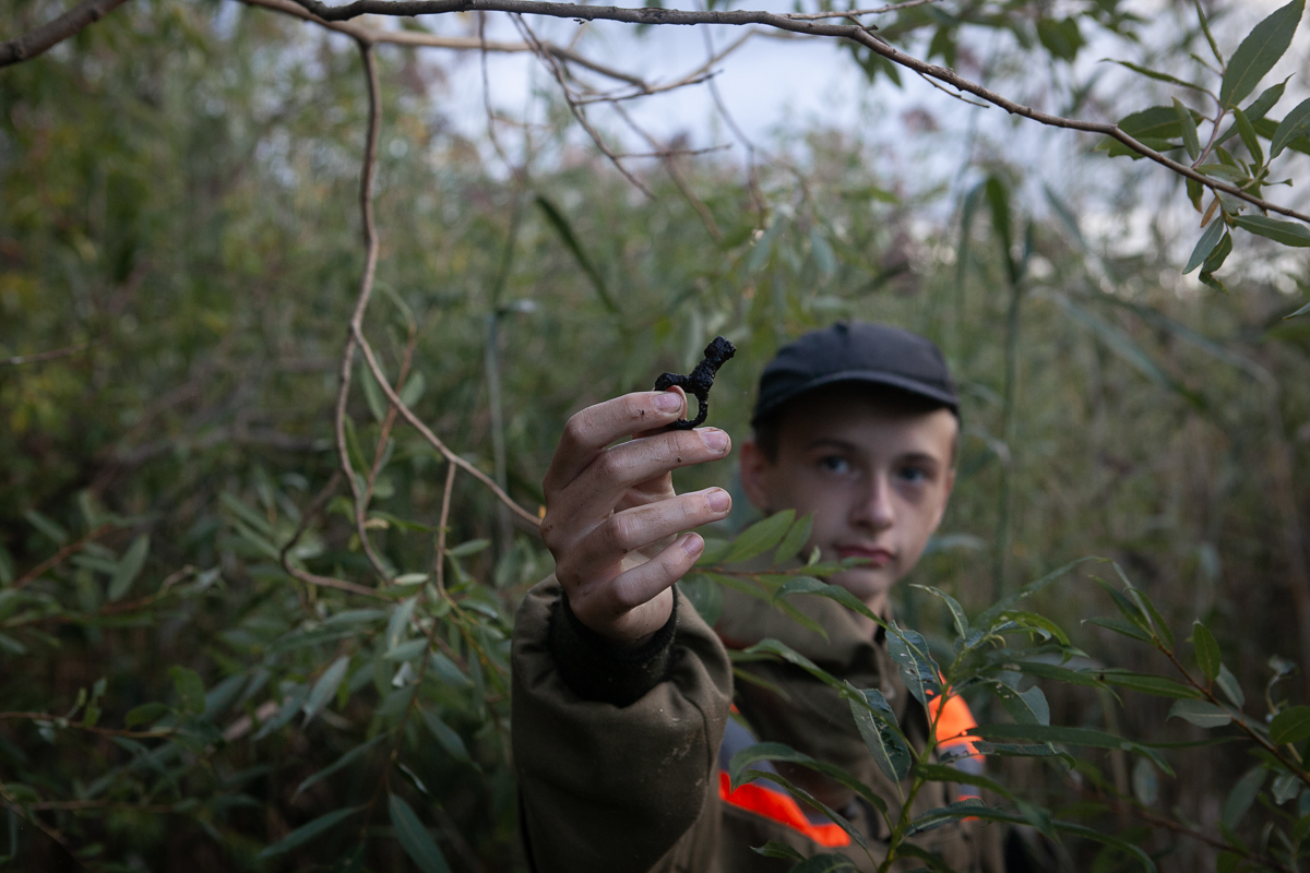 Анор и Павел Волов, 13-летний волонтер фонда из Белозерска, идут к старой иве, которую прозвали «папа-дерево». Анор приглашала биологов, которые подсчитали, что примерный возраст дерева — 60 лет. Скорее всего, это первое дерево, которое выросло в зоне затопления, зацепившись за фундамент разрушенного дома. В его корнях Анор и волонтеры фонда находят артефакты — предметы быта, которые принадлежали жителям Крохина
