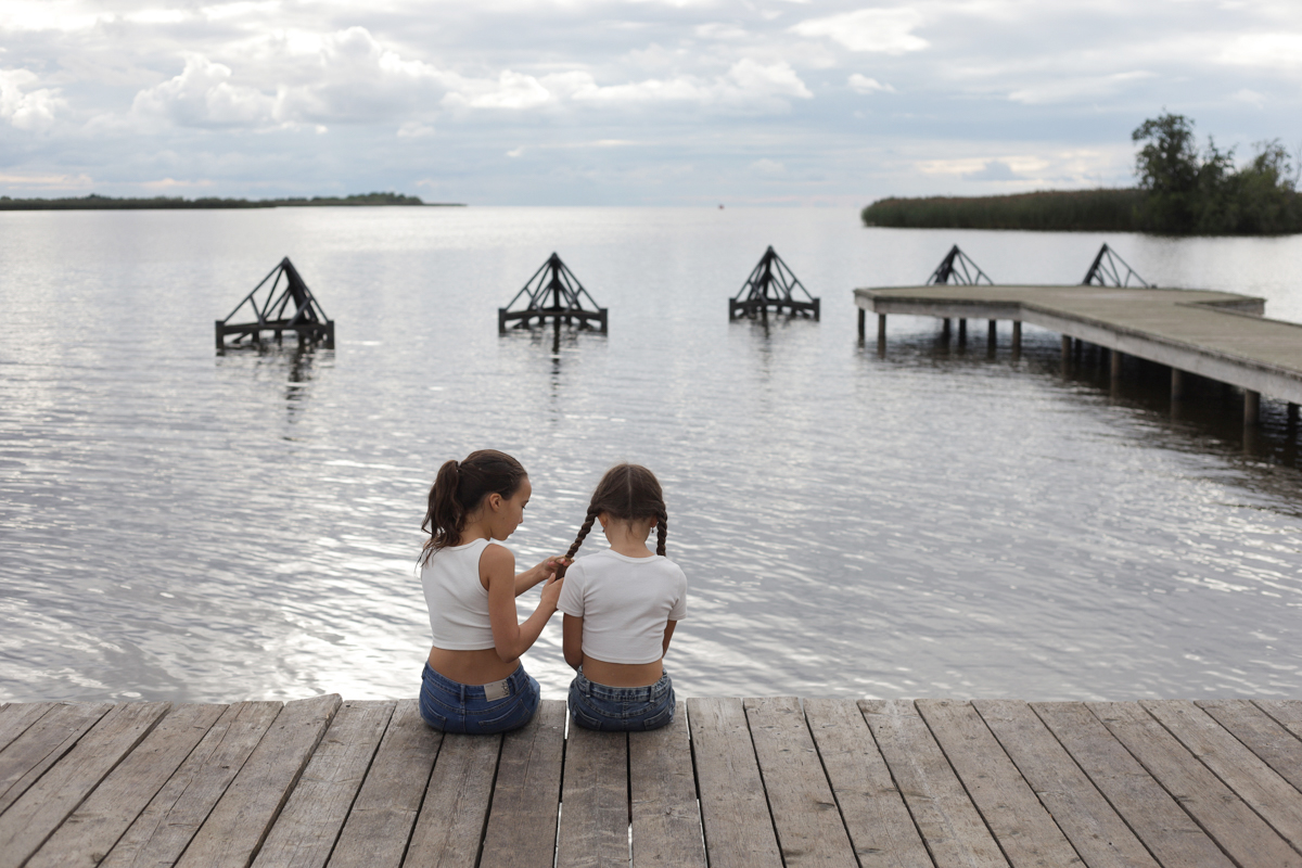 Ева и Ксюша плетут друг другу косички. Они приехали в Крохино уже второй раз