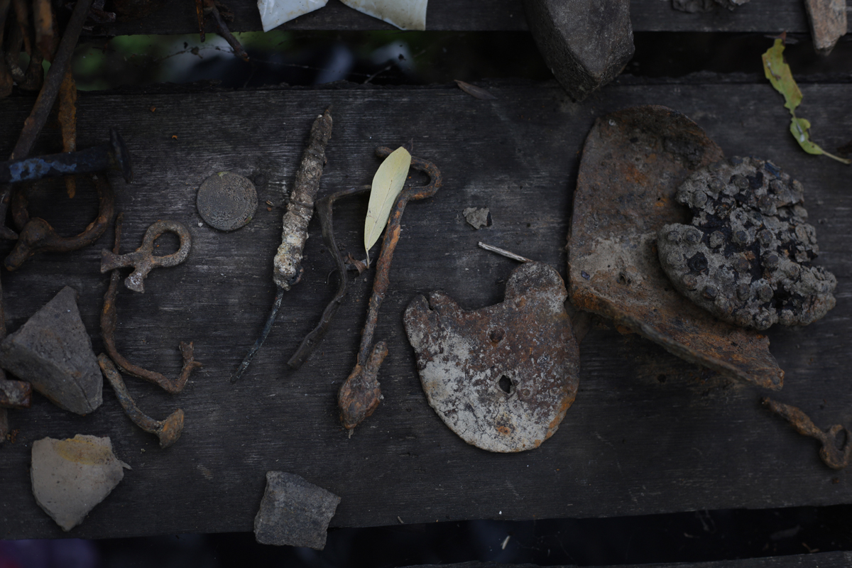 Артефакты, найденные в корнях «папа-дерева». Позже они станут частью музейной коллекции, которую собирает фонд