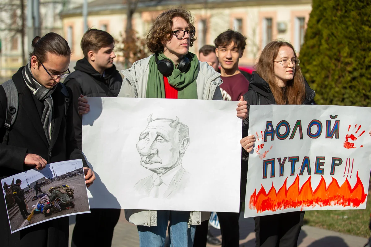 Раздающий листовки пенсионер в дешевой черной куртке сначала решительно отказывался от интервью: «Наш разговор могут признать российской пропагандой, и тогда мне — от 5 до 8 лет тюрьмы!» Но когда понял, что видеозаписи не будет, согласился поговорить.