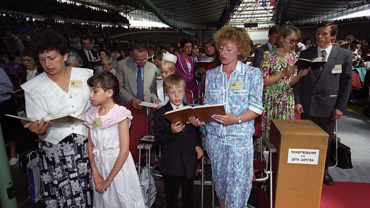 Члены организации «Свидетели Иеговы» на заседании в Москве, Россия, 11 июля 1997. Фото: Владимир Машатин / EPA
