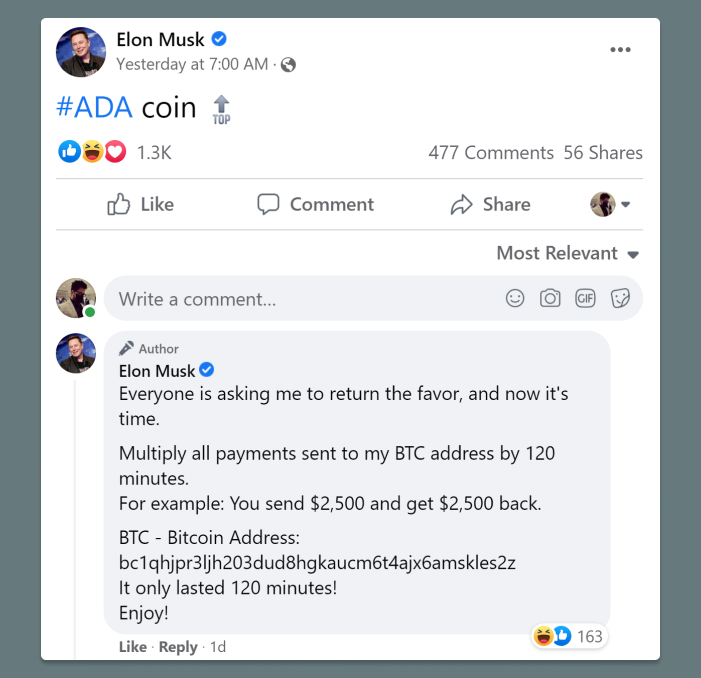 В своих роликах мошенники использовали также инвестора и одного из богатейших людей мира Уоррена Баффета, состояние которого в 2024 году оценивалось в 146 миллиардов долларов, а также основателя компании Amazon Джеффа Безоса. Но Илон Маск появлялся в подобной рекламе чаще других — он «играет» в четверти всех дипфейк-роликов и в 90% мошеннических видео про криптовалюты.