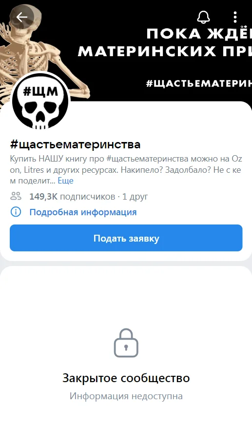 «Мы снесли всю стену, чтобы не попасть под статью. Модерить все 100500100500 постов за 9 лет группы, чтобы не попасть под „длящееся нарушение”, мы не готовы, а суммы штрафов чудовищны. <…> Скорбим о группе и о невозможности попрощаться с подписчицами и читательницами. К счастью, за последние годы стало хорошим тоном говорить о проблемах материнства, процесс запущен. Всех не заткнут», — говорится в комментарии от имени администратора группы «щастьематеринства» в дружеском паблике. Сам паблик закрыт. Сообщений в нем больше нет. Создано сообщество было в 2015 году жительницей Екатеринбурга, в группе с самого начала публиковались анонимные рассказы молодых матерей, где честно обсуждались трудности этого периода.
