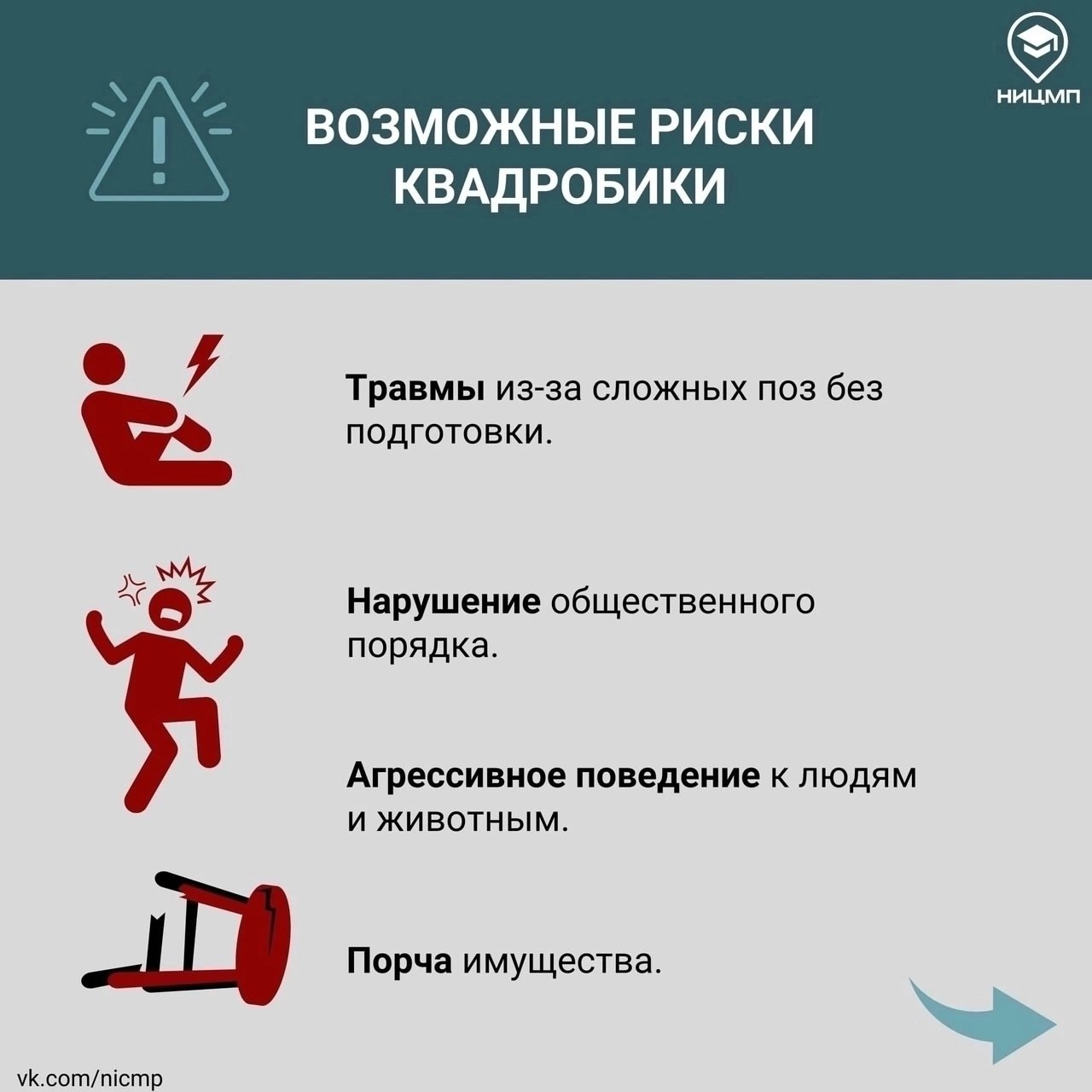 В российских школах тем временем начинают проводить лекции об опасности квадробики. Север.Реалии изучили посты в социальных сетях разных школ. В некоторых из них разговоры об опасности квадробики проводят наравне с изучением правил дорожного движения или предупреждением экстремизма. В памятках, размещенных на страницах школ, говорится, что квадробика может быть причиной травм, нарушения общественного порядка, порчи имущества и агрессивного поведения.
