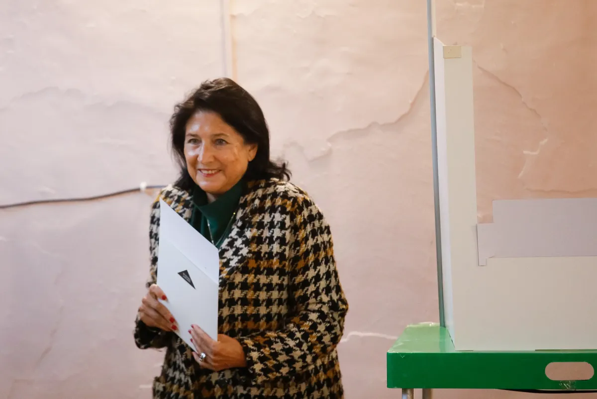 «Я проголосовала за новую Грузию, за ту Грузию, ради которой я приехала в эту страну 22 года назад. Я проголосовала за ту Грузию, за которую молились все мои предки, за которую молится вся Грузия. Этой ночью мы все будем победителями. Никто не будет огорчен, потому что победит Грузия», — заявила президент Саломе Зурабишвили.