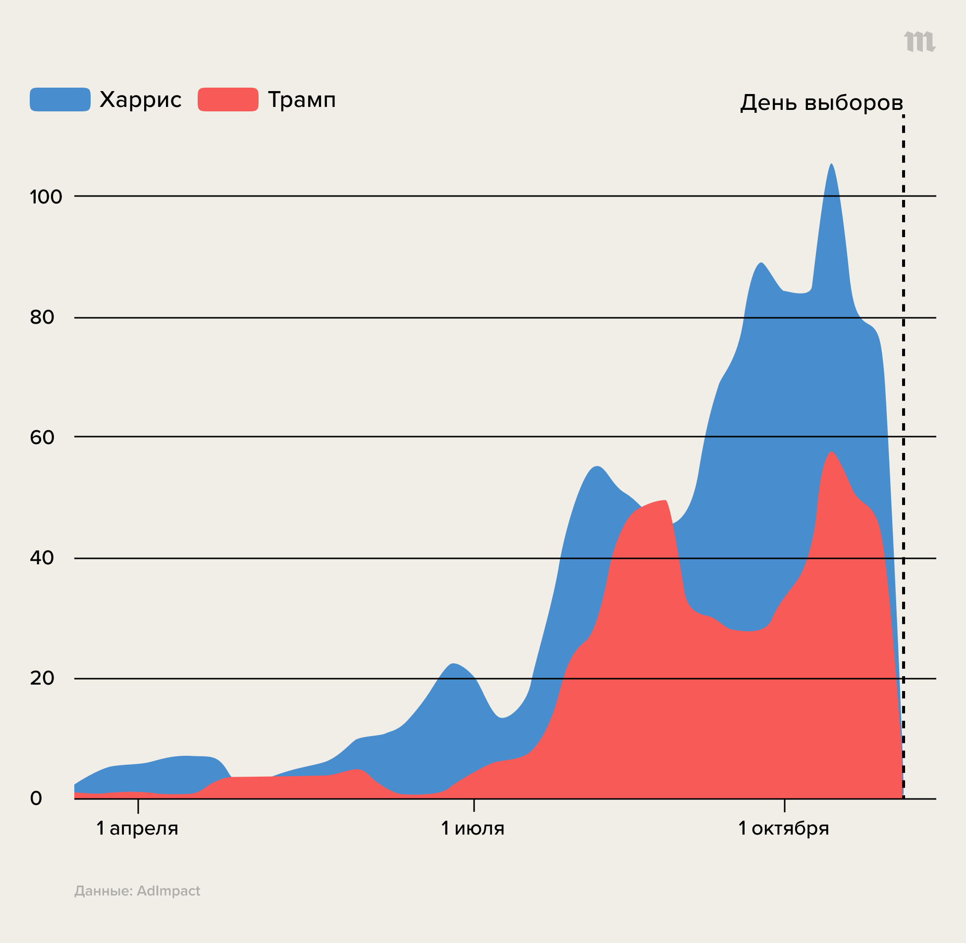 В этой ситуации их штабам остается бороться за крошечную долю голосов в семи колеблющихся штатах — исход выборов наверняка решат десятки или сотни тысяч избирателей. Главный инструмент, который используют и Харрис, и Трамп в этой борьбе — реклама на телевидении: они уже потратили на нее почти два миллиарда долларов, купив 904 тысячи показов. Всего, с учетом трат активистских групп и кандидатов в Конгресс, трансляция ТВ-роликов во время нынешней кампании обойдется американским политикам примерно в десять миллиардов долларов.