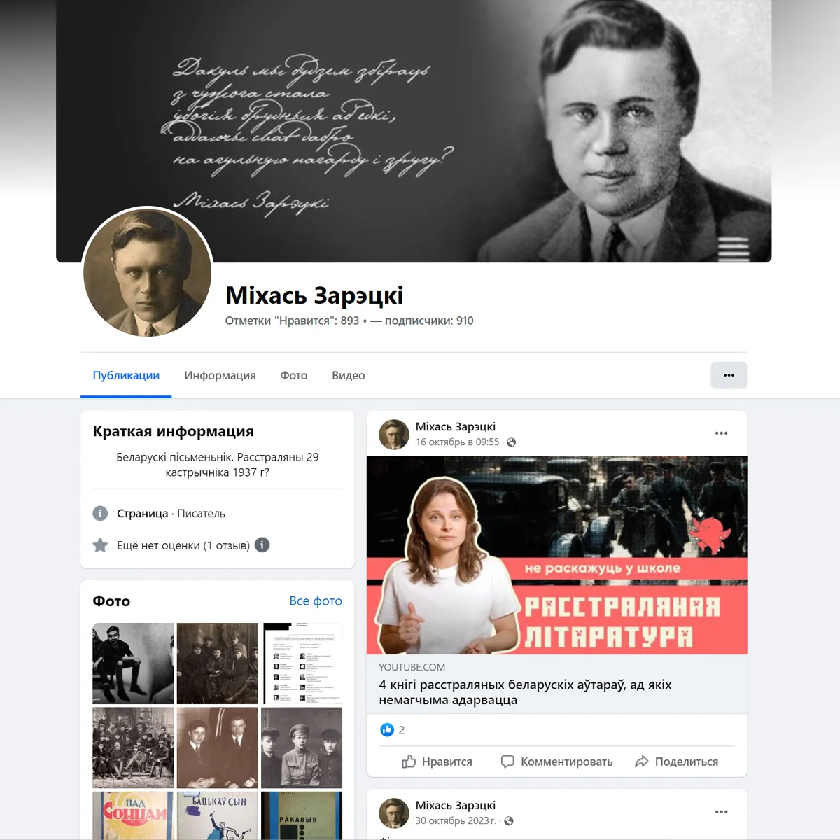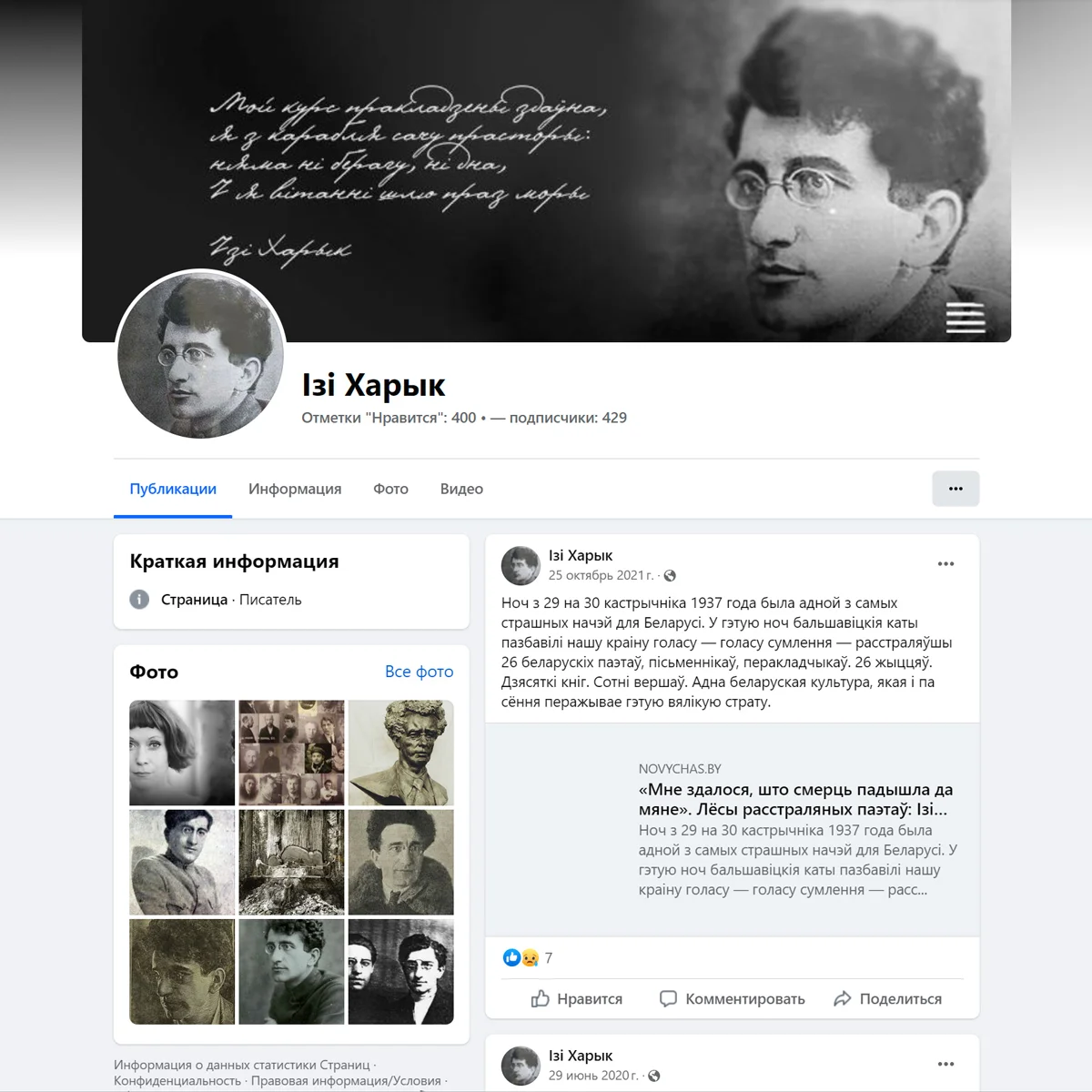 В ночь с 29 на 30 октября 1937 года советская власть расстреляла беларусскую интеллигенцию: среди 132 убитых были 22 литератора. Это событие вошло в историю как «Ночь расстрелянных поэтов», или «Чорная ноч». Но как до 1991 года, так и после него власть все еще фальсифицирует историю, оправдывает коммунистические репрессии, преуменьшает количество жертв и, наоборот, создает позитивный образ НКВД (например, когда одевает на праздниках милиционеров в энкавэдэшную форму). Вопреки официальной позиции государства, сносу памятников, разгону демонстраций и арестам активистов память о преступлениях и массовых убийствах невинных сохраняют сами граждане.