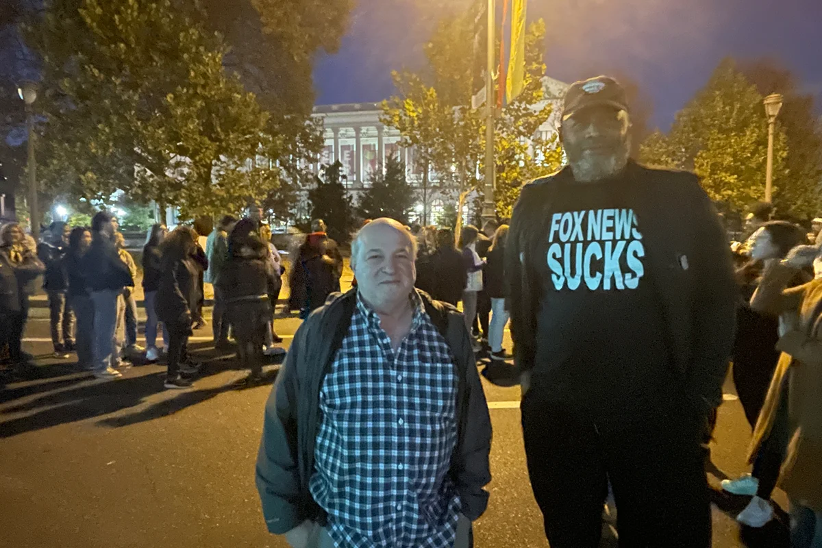 Почему-то в очереди на митинг Харрис стояли в основном белые, хотя черное население города составляет минимум треть. Пройти мимо колоритной пары из высоченного афроамериканца Флетчера Джонсона и коренастого еврея Айры Коэна было просто невозможно.