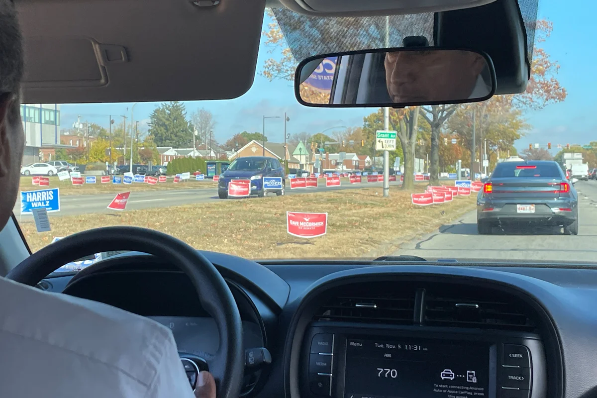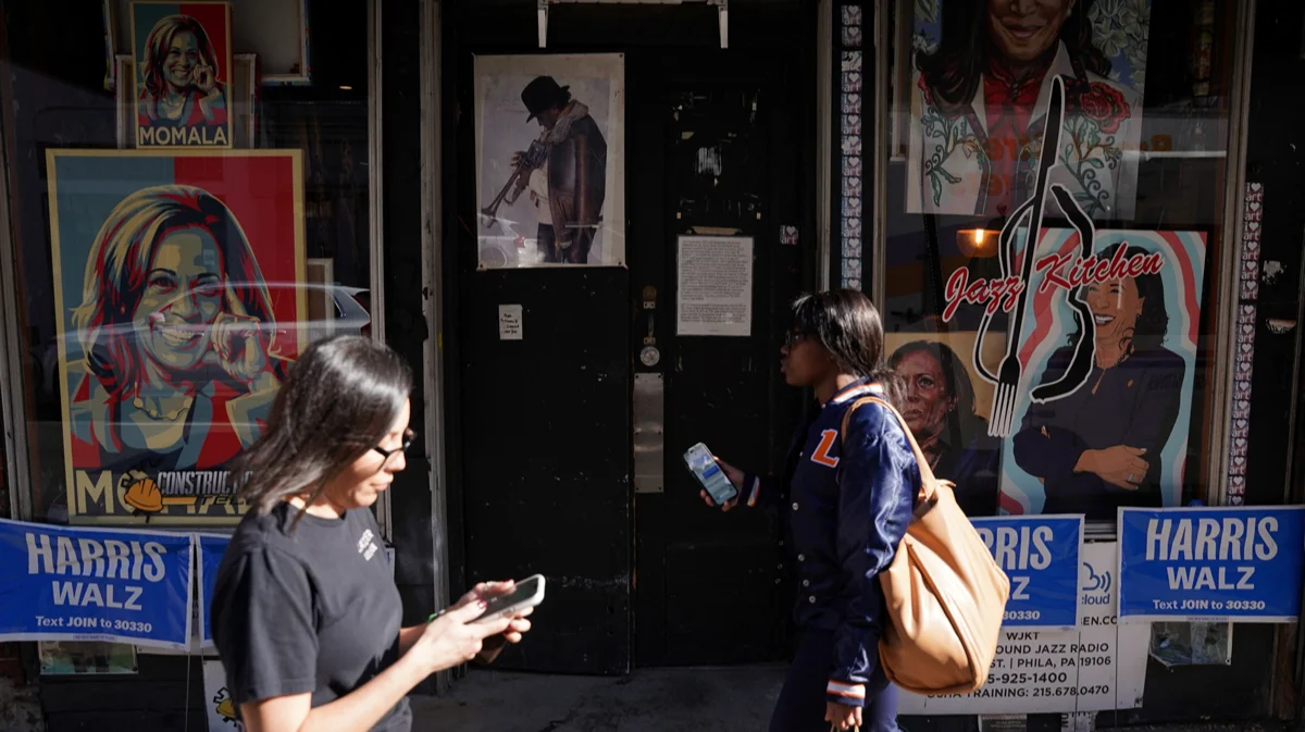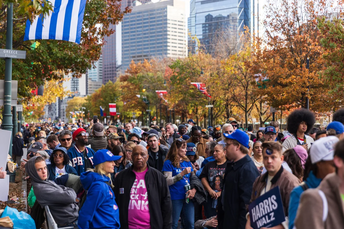 В последние дни перед выборами весь центр Филадельфии был забит одинаковыми агитационными плакатами, на которых были изображены Харрис, Обама и Мартин Лютер Кинг с надписью: «Защити демократию, проголосуй 5 ноября». Буквально на каждом перекрестке сразу на трех или четырех столбах были прикреплены эти плакаты.