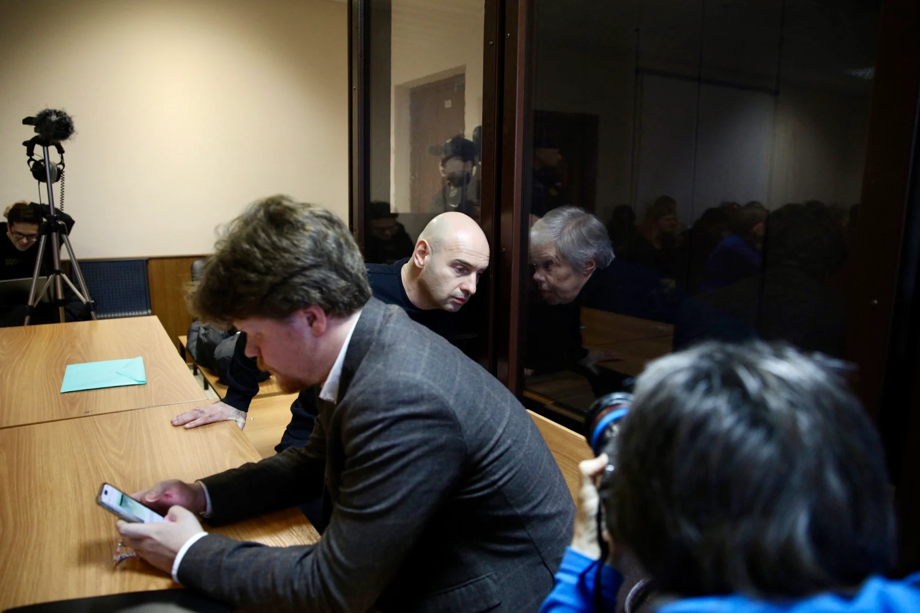 На другой день меня, перед тем как идти в зал судебных заседаний, в какую-то комнату заводят, там мужчина сидит — ни документов, ни фамилии, ничего не сказал, только: «Меня звать Евгений. Я по борьбе с экстремизмом. Есть ли у вас какие-то пожелания?». Я рассказала эту историю, и про дверь, и все рассказала. [Он сказал:] «Хорошо». Начинается судебное заседание, вижу, Оскар Астемирович уже на месте, ему рассказываю. Он говорит: «Нет, я копию взял». И говорит: «Вы же понимаете, для чего они это сделали?». А потом говорит мне: «Они изменили последнюю страницу очной ставки. Они перепечатали это все».