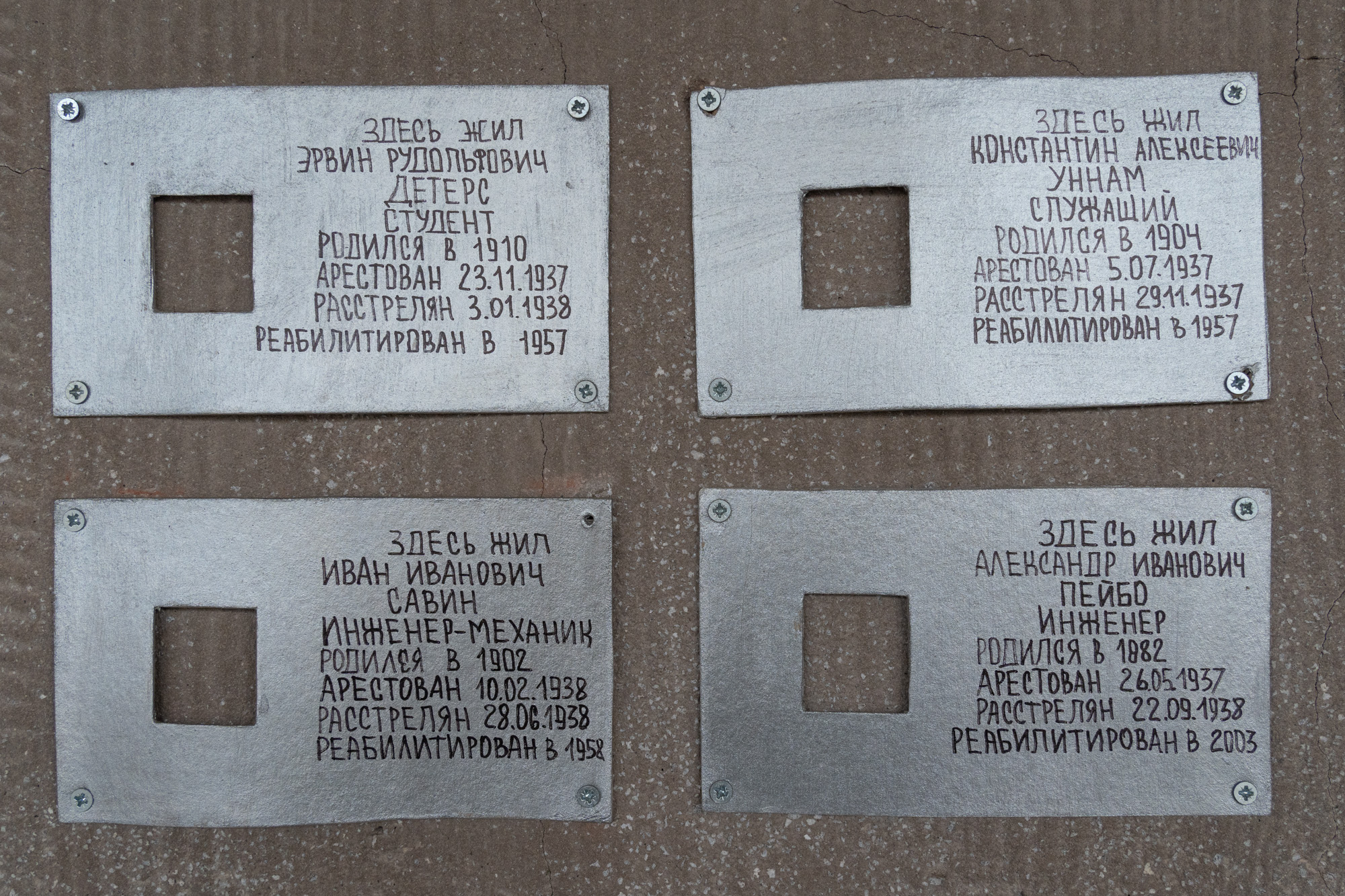 — Нас во время установки часто поддерживали люди, проходившие мимо. Например, когда мы с сыном приехали устанавливать табличку Петру Николаеву и его сестре, на Лесном проспекте, 13/8, место, где висели таблички, было оштукатурено и закрашено. Коммунальщики постарались все следы табличек уничтожить.