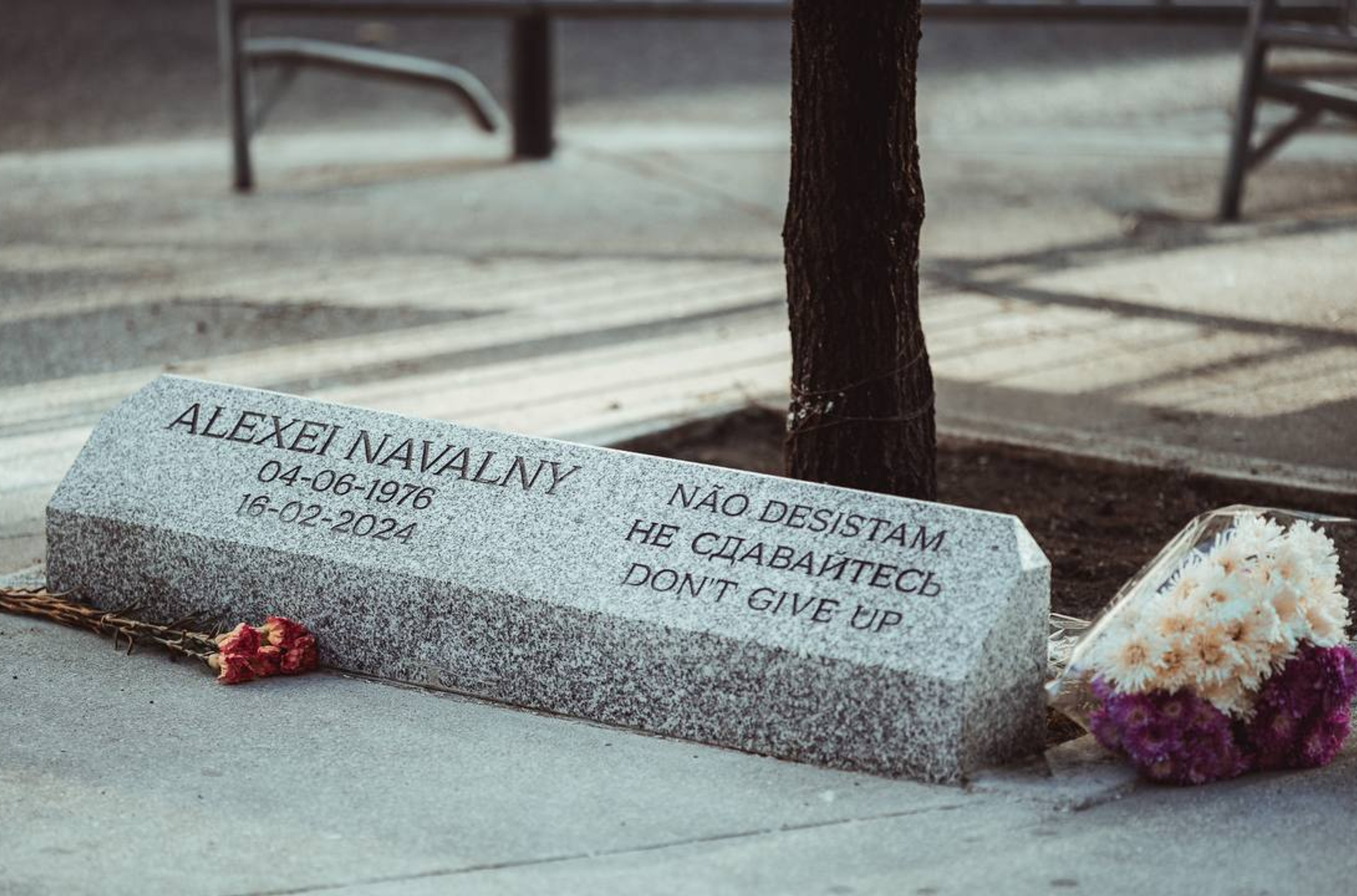 В Лиссабоне открылся первый в Европе мемориал Алексею Навальному. Памятник с надписью «Не сдавайтесь» на трех языках установлен в 100 метрах от здания российского посольства, на Rua Visconde de Santarém, 71, передает корреспондент The Insider.