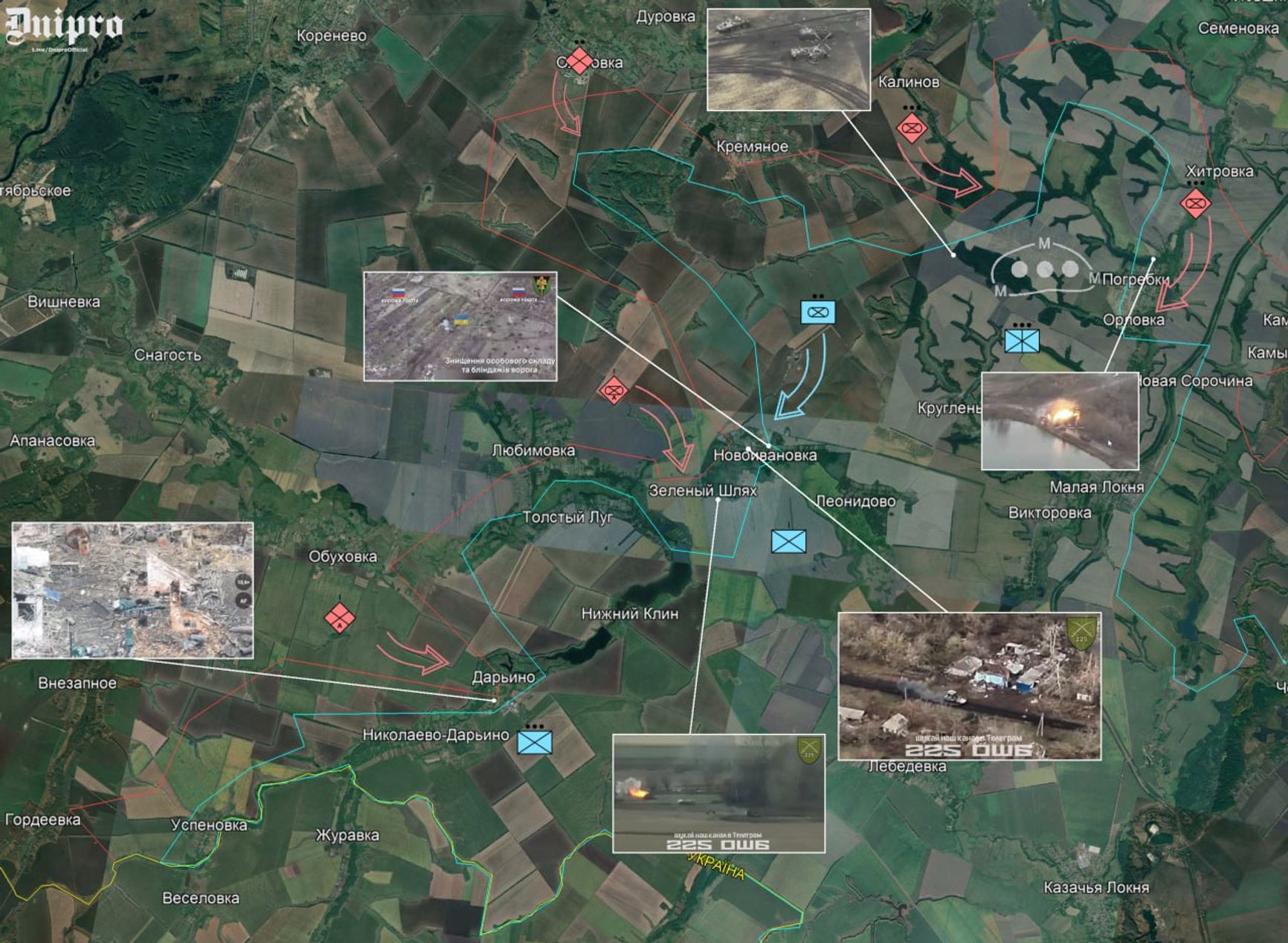 Украинский OSINT-ресурс Dnipro Osint на основе геолоцированных видео обобщает информацию об успехах и неудачах наступления ВС РФ в Курской области: штурмы в районе Погребков были отражены благодаря дистанционному минированию, результаты атак от Зелёного Шляха до Новоивановки пока сложно оценить, продвижение российских военных подтверждается в сторону Обуховки и Дарьино.