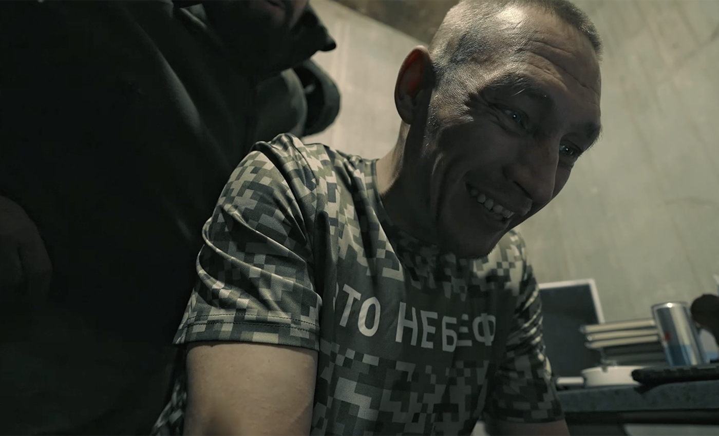 «Щас, товарищи документалисты, я вам покажу, как надо работать: попкорн, кофе, телевизор, мавик», — смеется в кадре сутулый коротко стриженный человек с хитрым прищуром. Склейка — и он же, крупным планом, говорит кому-то в рацию: «Балык, пока что не отвлекай! Дай я убью эту группу из шестерых! Убью — и все, будем дальше делать дело».