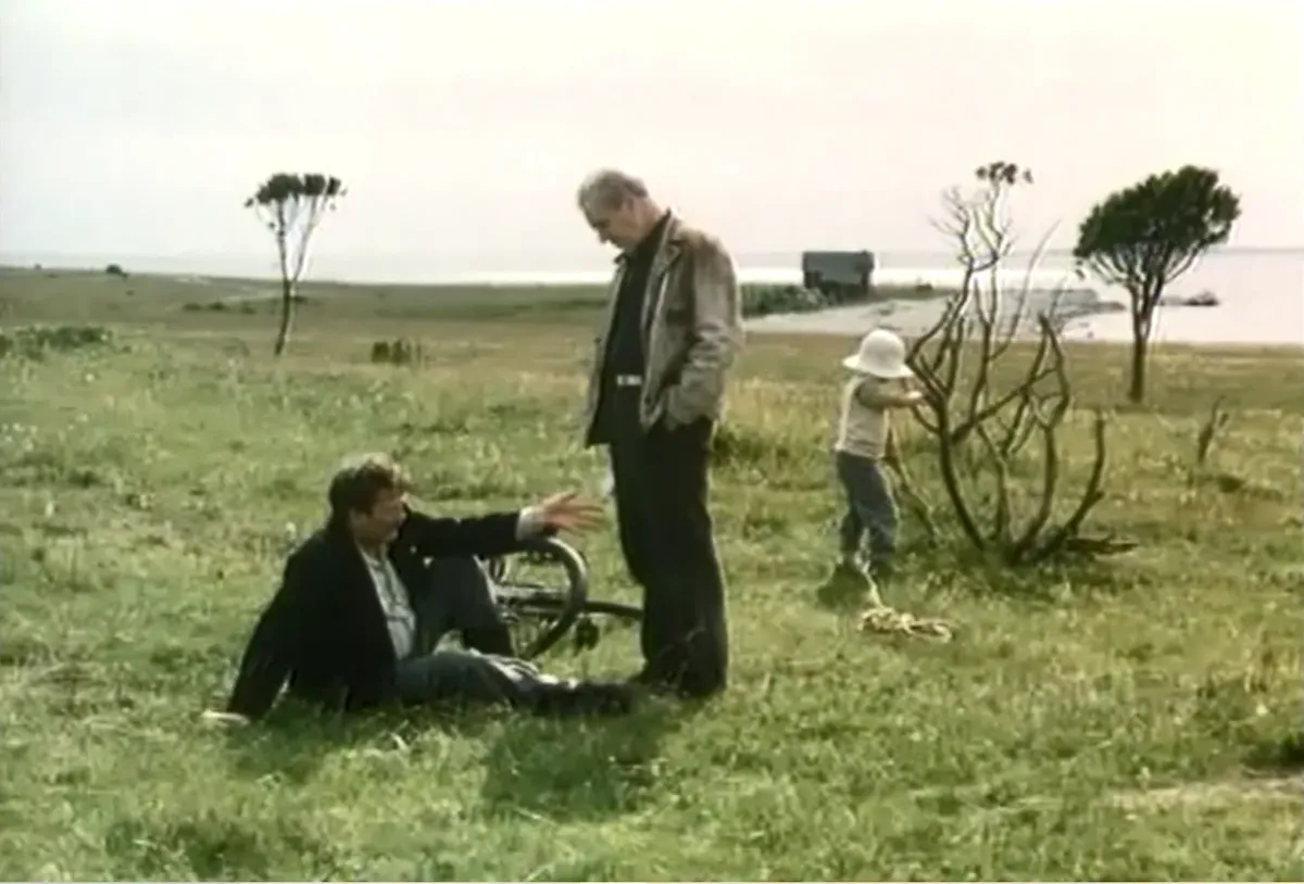 В «Жертвоприношении» сразу после монолога Александра почтальон появляется. На велосипеде, почти Печкин, Ницше читает, заводит разговор про того пресловутого карлика, горбуна, от которого Заратустра потерял сознание. И этот шведский Печкин обращается к Александру: «Вот ты, известный журналист…» И критично описывает его стиль, мировоззрение, соглашаясь и нет: «Не надо особо печалиться… Главное — ничего не ждать».