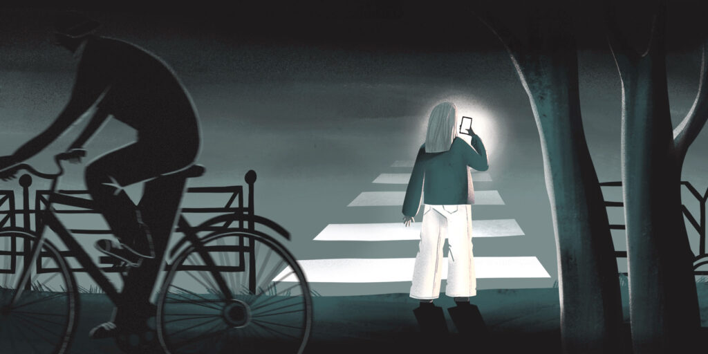 Велосипедист появился на камерах, когда Дана еще ехала в электричке. Менее чем через 20 минут после прибытия поезда они встретились: Дана стояла на пешеходном переходе и не обращала на него внимания, а вот мужчина на велосипеде ее явно заметил и кружил за спиной. После он медленно ехал следом, оглядываясь и держа большую дистанцию. Было около полуночи, когда Дана вошла в лесополосу. Мужчина же объехал парк, слез с велосипеда и пошел пешком ей навстречу. До дома Дане оставалось пройти полтора километра.