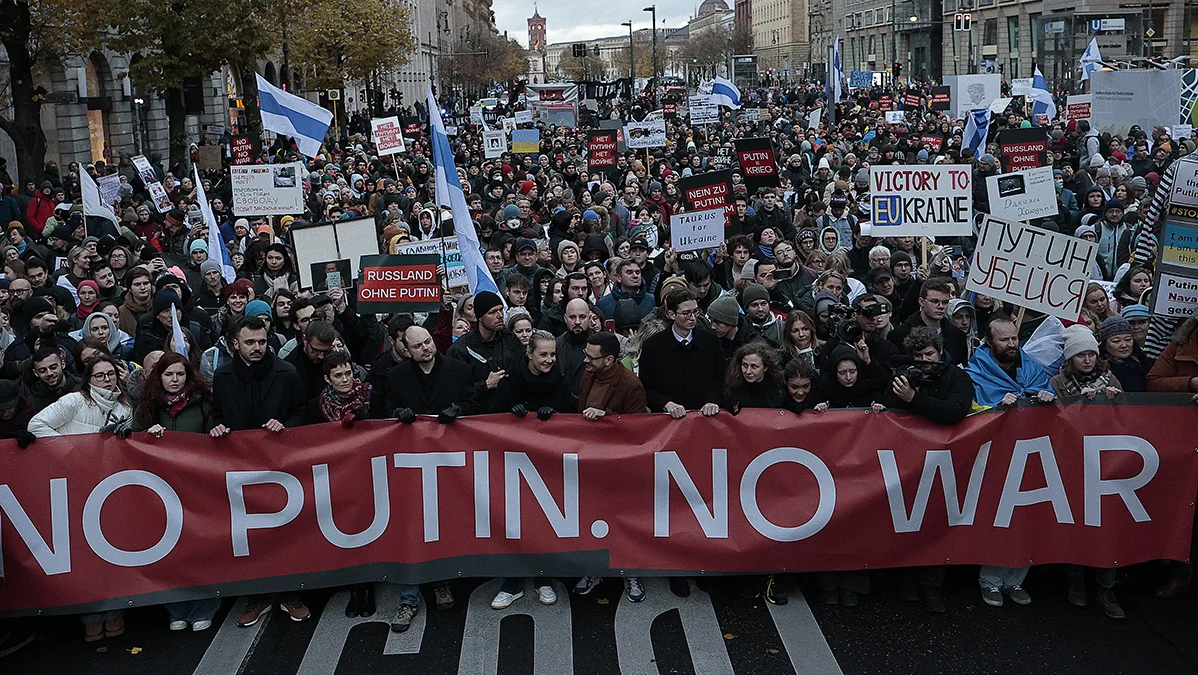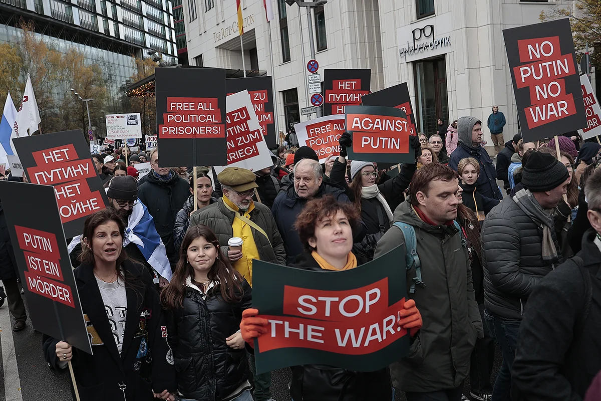 В столице Германии 17 ноября состоялся антивоенный марш, объявленный бывшими политзаключенными Ильей Яшиным и Владимиром Кара-Мурзой, а также вдовой политика Алексея Навального Юлией. Несколько тысяч россиян прошли по центру Берлина с бело-сине-белыми флагами (но было и несколько триколоров) и требованиями вывести российские войска с территории Украины, привлечь Владимира Путина к суду как военного преступника и освободить всех политических заключенных. Про Украину и адвокацию уехавших россиян выступавшие говорили мало, но обещали прийти еще.