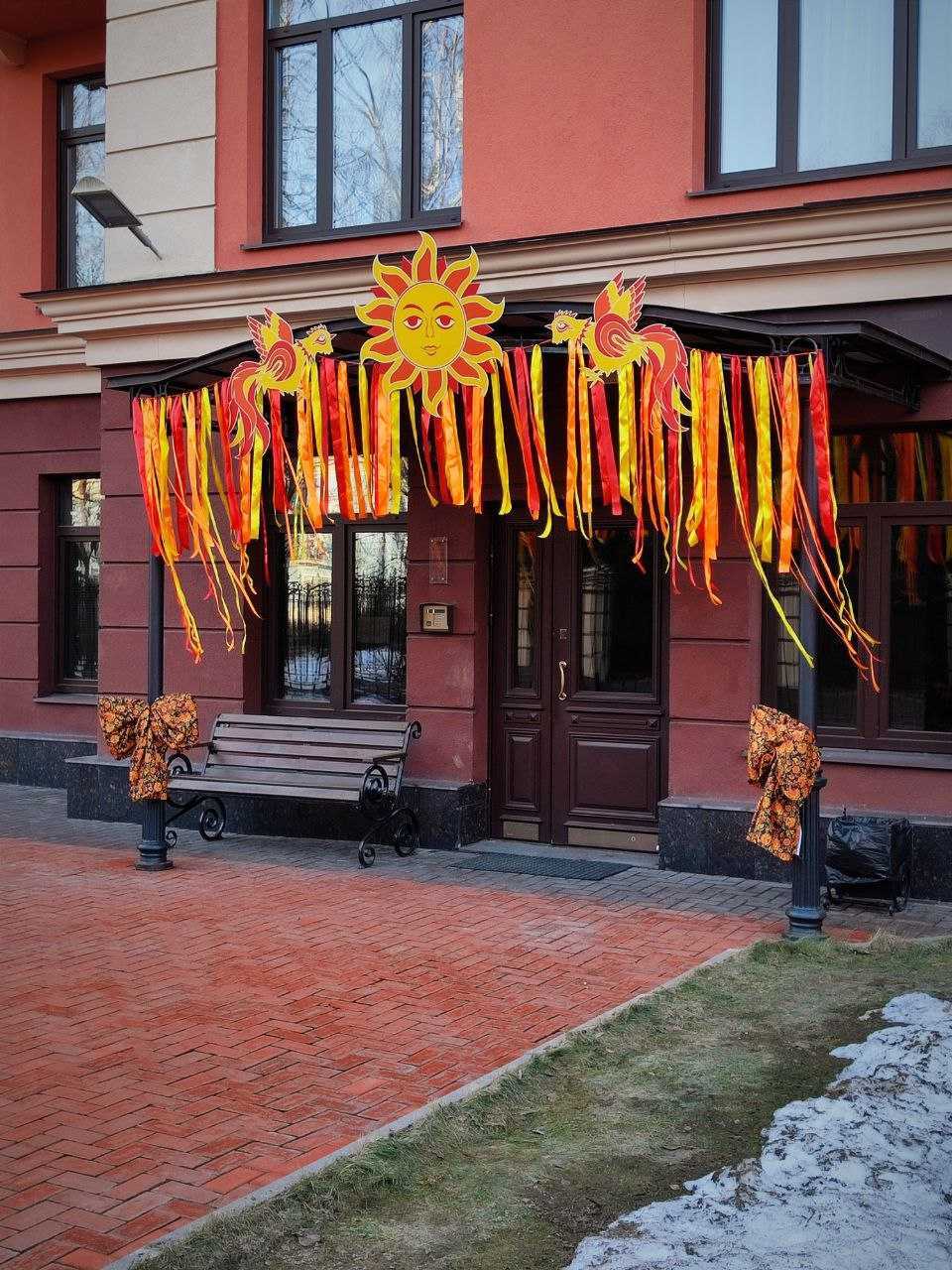 В марте семья Дмитрия решила украсить двор дома к Масленице.
