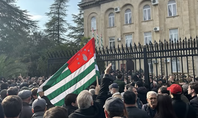 Сухуми, 15 ноября 2024 года. Протестующие против инвестиционных соглашений с Россией окружили здание Народного собрания