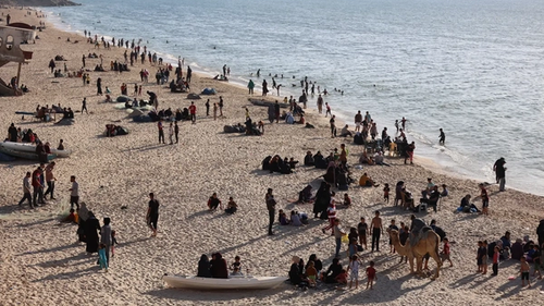 Палестинцы скрываются от атак Израиля на берегу. 17 апреля 2024 года.