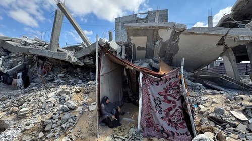 Женщина на месте руин дома, разрушенного израильскими военными. 7 октября 2024 года.