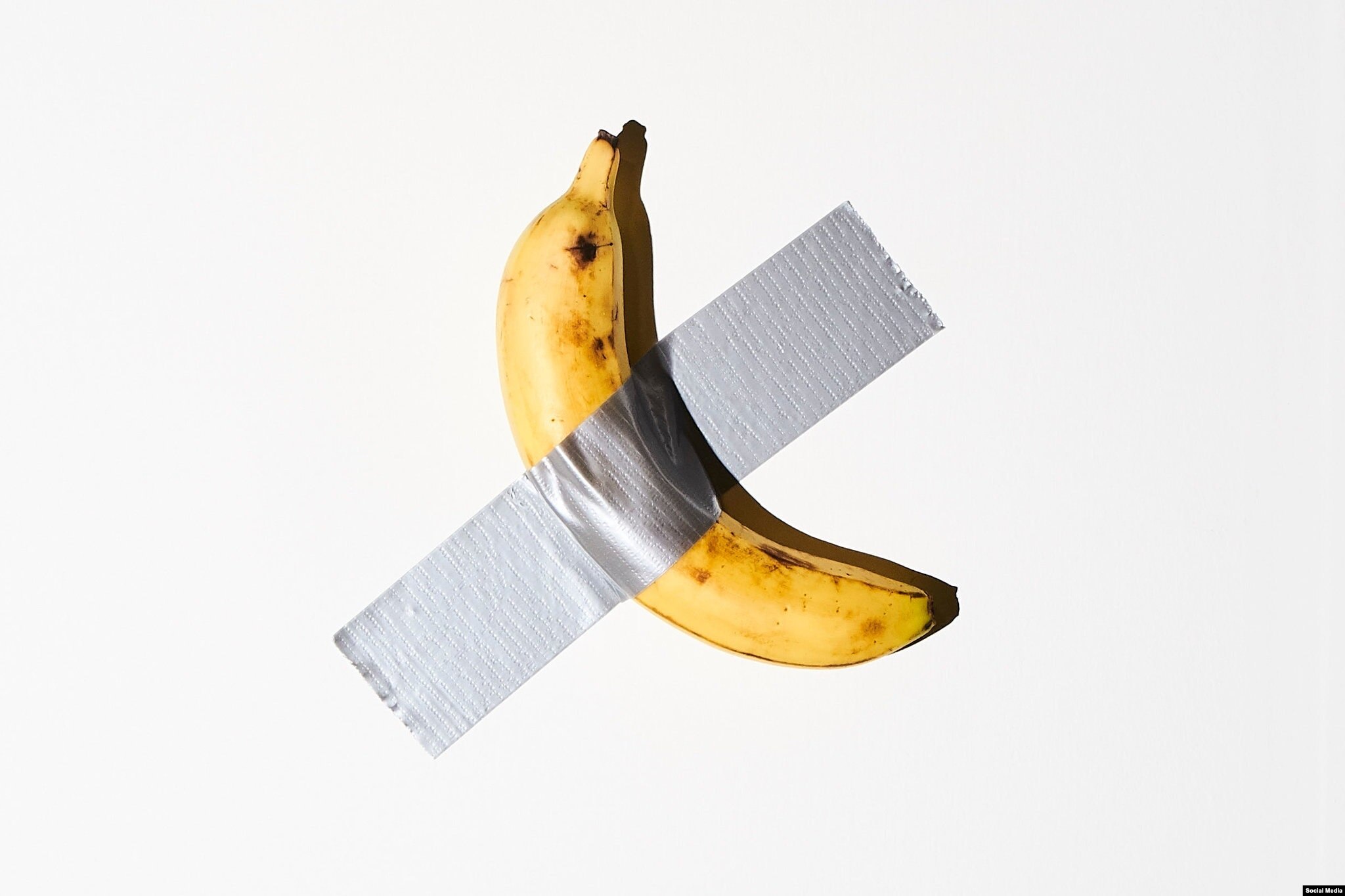 Приклеенный серым скотчем к стене банан под названием "Комедиант", продали на аукционе Sotheby's за 6,2 миллиона долларов.