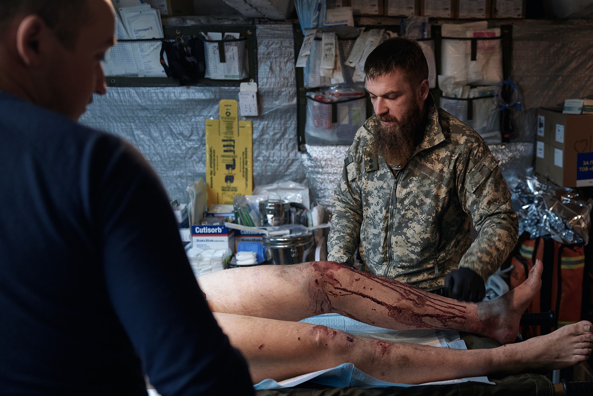 Российские войска штурмуют Курахово — важнейший логистический хаб южного Донбасса, пишет «Медуза» в свежей сводке о ходе боев. Главный удар ВС РФ наносят на северном и южном флангах украинской обороны Курахово (подробнее можно посмотреть здесь). Военный эксперт Иван Ступак в интервью «РБК-Украина» предположил, что если ситуация кардинально не изменится, то «срок пребывания там украинских военных измеряется неделями». Пока же ВСУ пытаются отражать российское наступление, несмотря на потери. «Медуза» публикует снимки работы украинского пункта стабилизации возле Курахово, куда доставляют с линии фронта раненых бойцов ВСУ. Эти фотографии были сделаны 17 ноября 2024 года.
