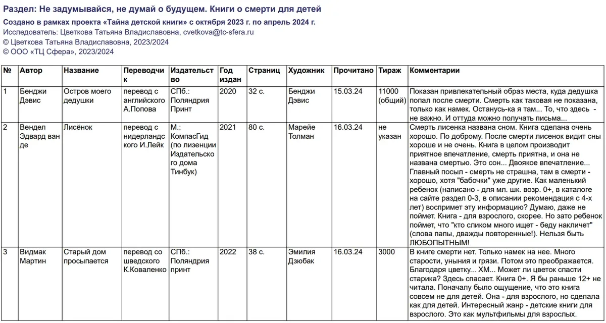 Автора несколько раз спрашивали в комментариях на страничке Совета по детской книге Союза писателей России во «ВК», каков, собственно, научный аппарат исследования. Автор сердито велела дочитать статью до конца («окончание следует», сказано в конце).