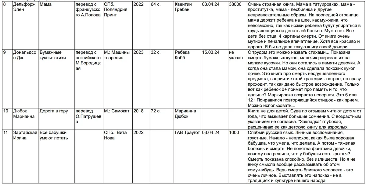 В таблице, куда Татьяна Цветкова заносила свои экспертные комментарии, об этой книге сказано: