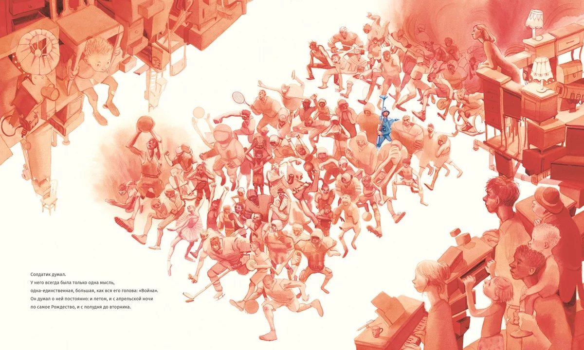 В принципе, вся эта книга — большая развернутая метафора. И этим солдатиком, который все никак не может демобилизоваться, может оказаться каждый из нас — с ежесекундной готовностью обороняться, когда никто не нападает, с поиском врагов, с недоверием к миру. И книжка как раз о том, что окружающий мир вполне может быть миром добрым, где не нужно все время ждать нападения — это о базовом доверии к миру, если уж на то пошло. Том самом доверии, которое нужно подрастающему человеку, чтобы расти гармонично.