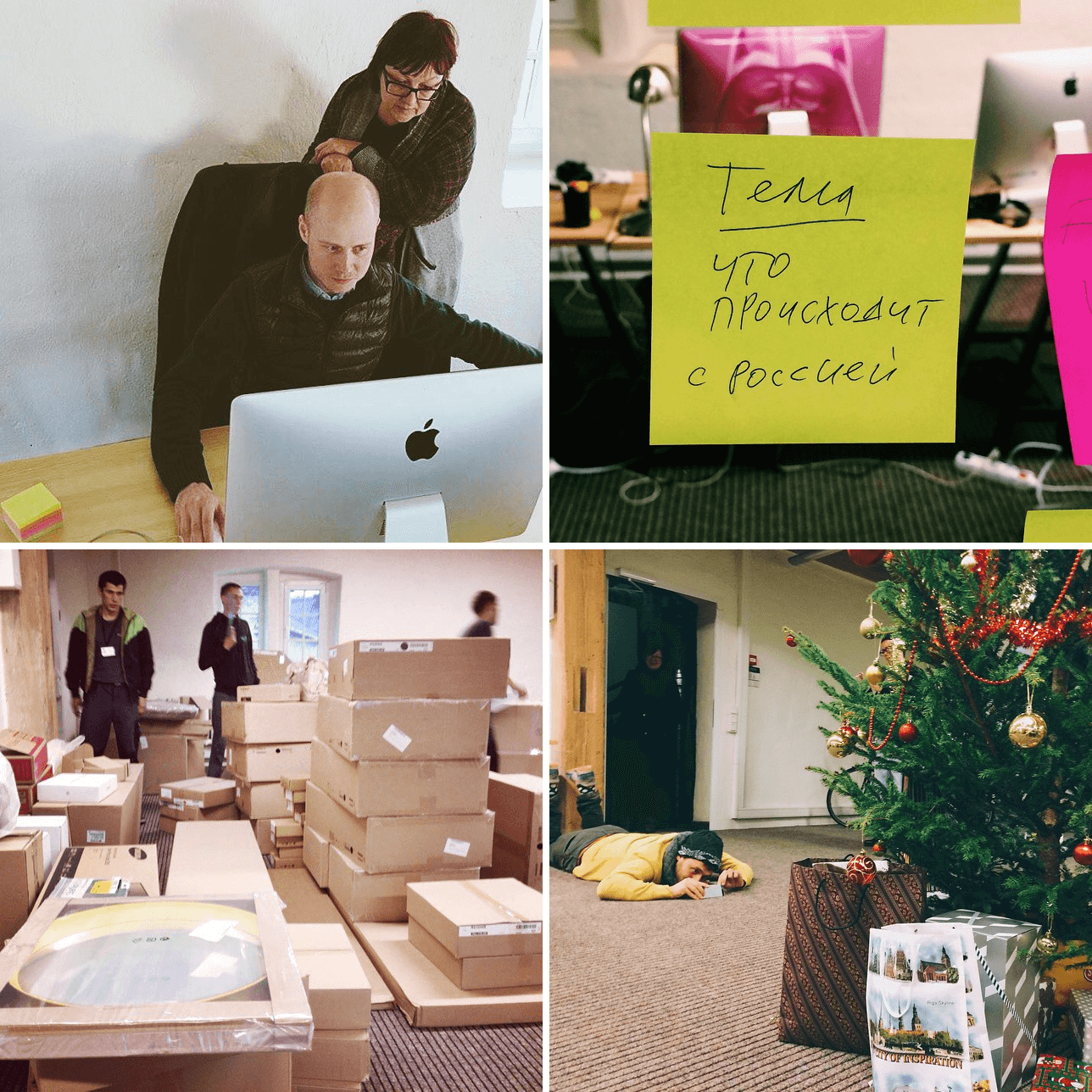 Еще до запуска «Медузы» мы завели аккаунт в инстаграме. Он чем-то напоминал шоу «За стеклом»: там мы публиковали фото нашей первой редакции в Риге (холодный офис на берегу реки), показывали, как вместе отмечаем праздники и собираем мебель из польской «Икеи», и, конечно, время от времени делились анонсами текстов.