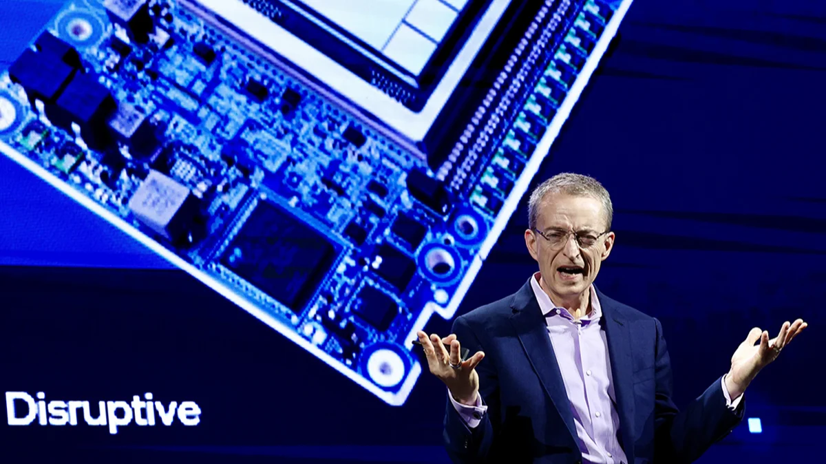 Генеральный директор Intel Патрик П. Гелсингер представляет ускоритель искусственного интеллекта Intel Gaudi 3 в своей программной речи на выставке COMPUTEX в Тайбэе, Тайвань, 4 июня 2024. Фото: Ritchie B. TOngo / EPA-EFE