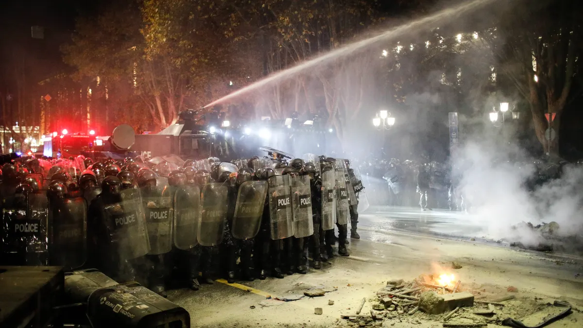 Violent clashes broke out in Tbilisi on Thursday night as thousands of Georgians took to the streets to protest the ruling Georgian Dream party’s decision to suspend negotiations on the country’s EU accession until 2028.