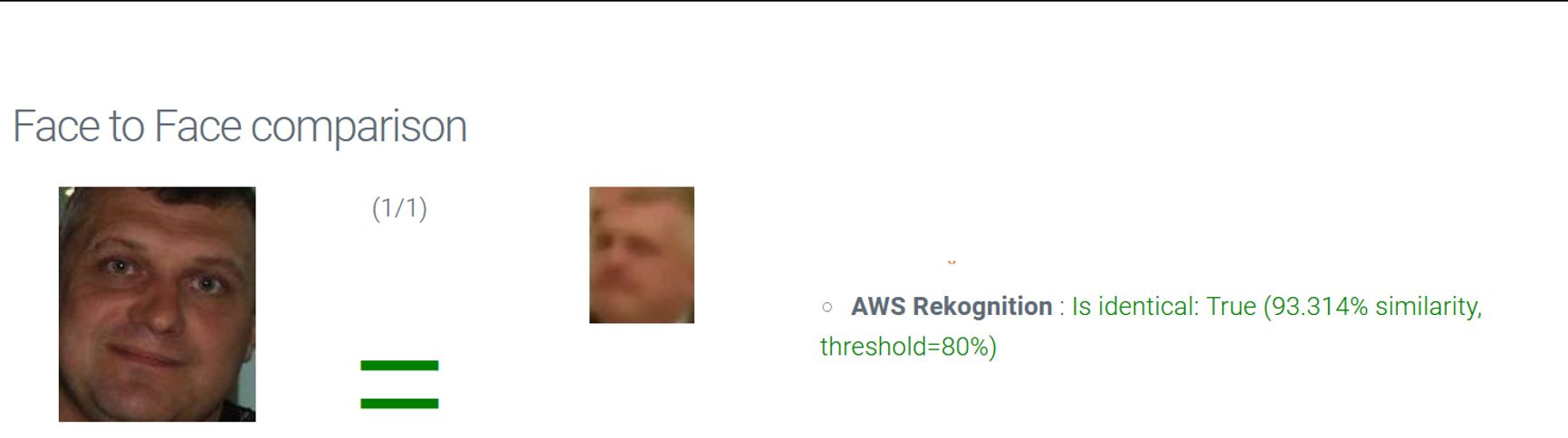 The Insider identified Sotnikov by running a screengrab from the obscure airport video through a proprietary reverse face-search tool. The search was successful despite the poor quality of Sotnikov’s image — largely because his FBI Most Wanted photos were also of poor resolution, resulting in an unlikely but high-confidence match. Subsequent comparisons of the blurry image from the airport scene to high-quality photos of Sotnikov, using various face-comparison forensic tools, confirmed the match with a confidence exceeding 90%.