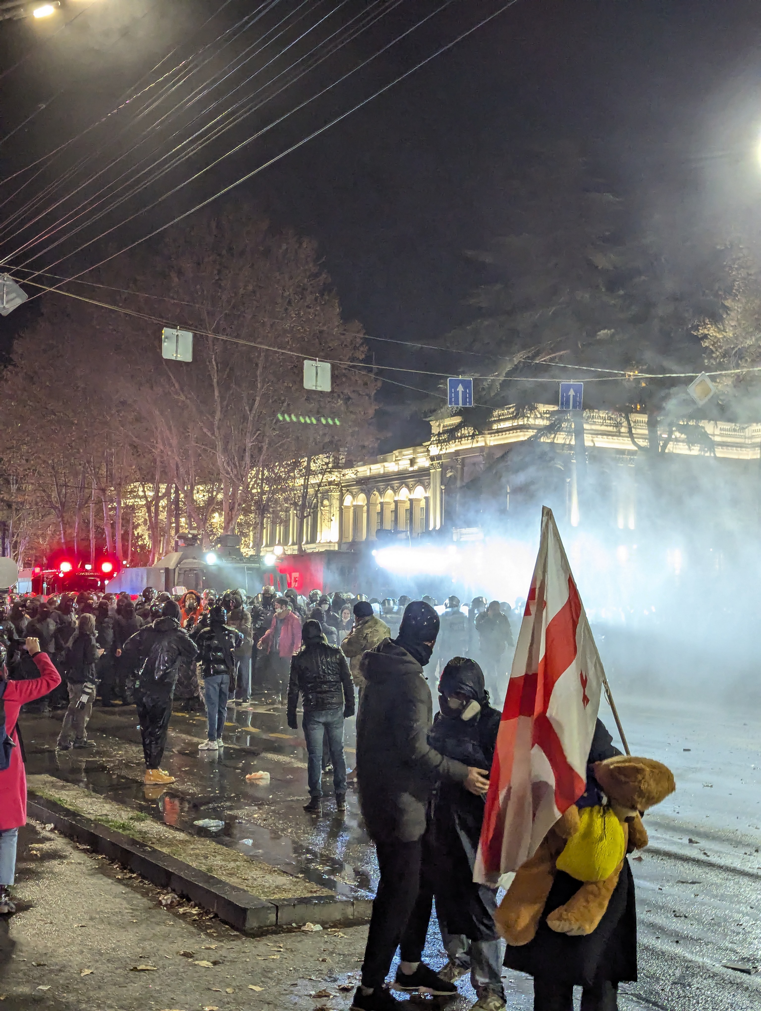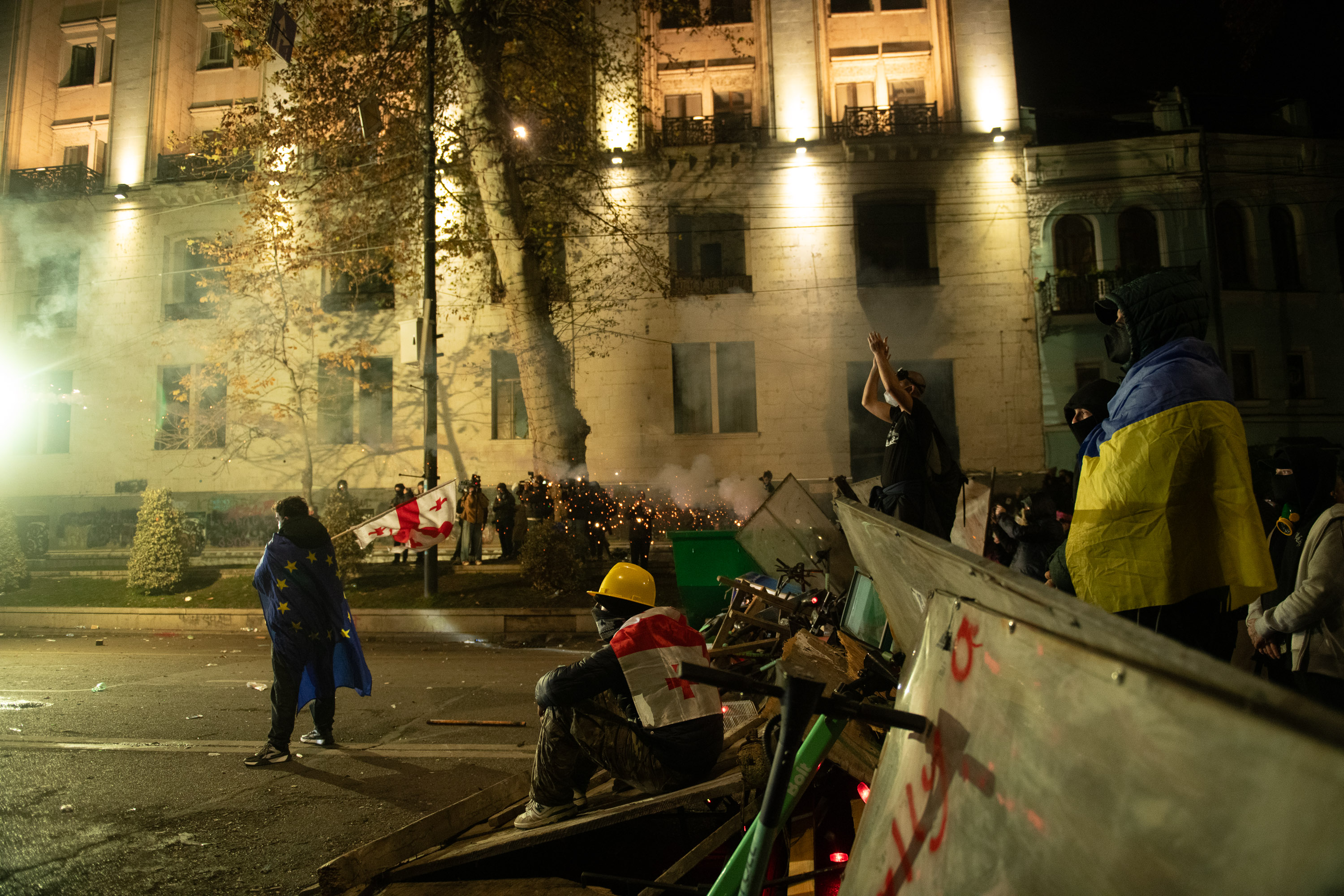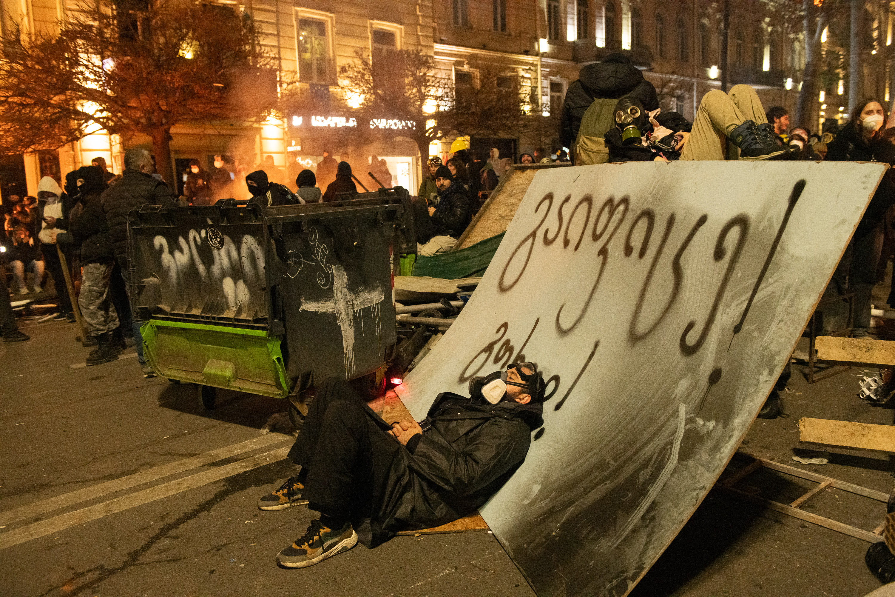 Каждую ночь проспект Руставели превращается в поле битвы между демонстрантами и частями спецназначения МВД. Командир этого отряда Звиад Харазишвили с кличкой Хареба внесен в "cписок Магнитского" по решению Госдепартамента США за применение силы против мирных демонстрантов в ходе различных выступлений в защиту демократии.