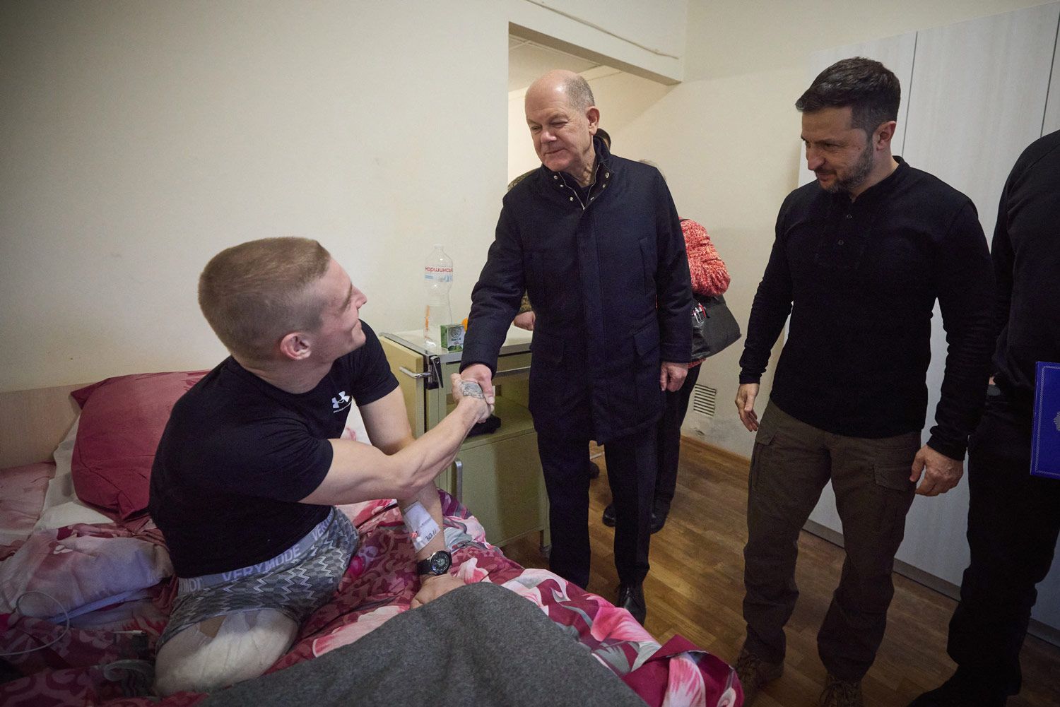 В Киеве Шольц встретился с президентом Украины Владимиром Зеленским, вместе они посетили один из госпиталей, где проходят лечение раненые солдаты ВСУ.