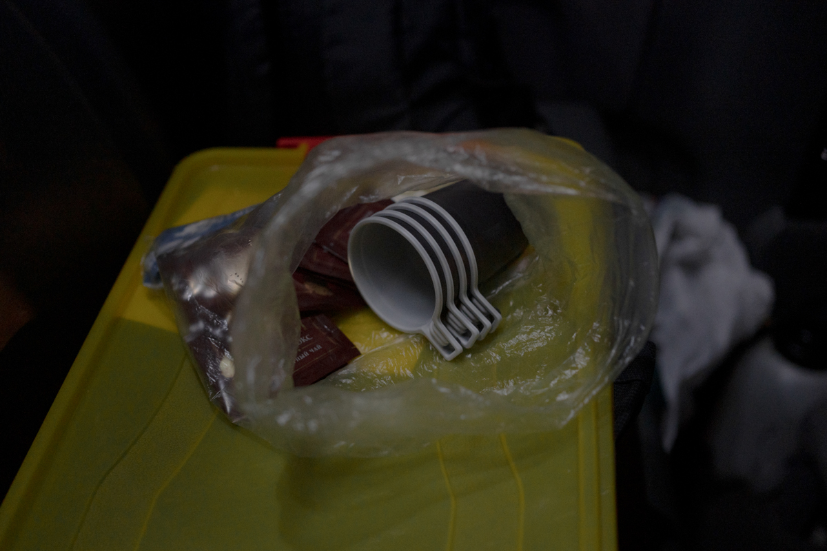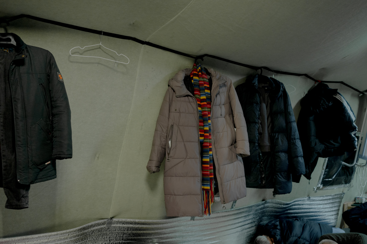 Палатка пункта обогрева на территории Центра социальной адаптации имени Глинки в микрорайоне ВостряковоФото: Ксения Максимова для ТД По словам Анастасии, человек может находиться в их пункте обогрева 12 часов, с восьми вечера до восьми утра. Из горячего питания предусмотрен только чай, но «в крайнем случае» бездомному могут предоставить сухой паек: лапшу или пюре быстрого приготовления.