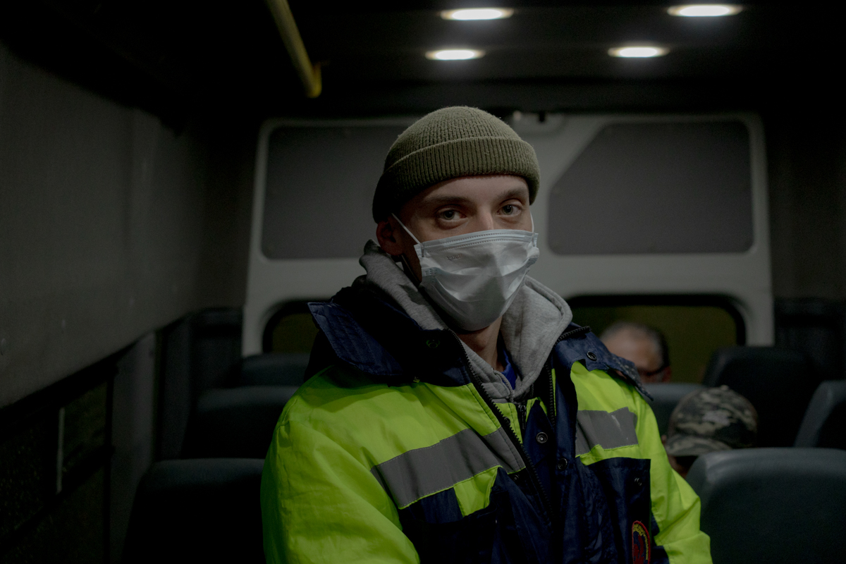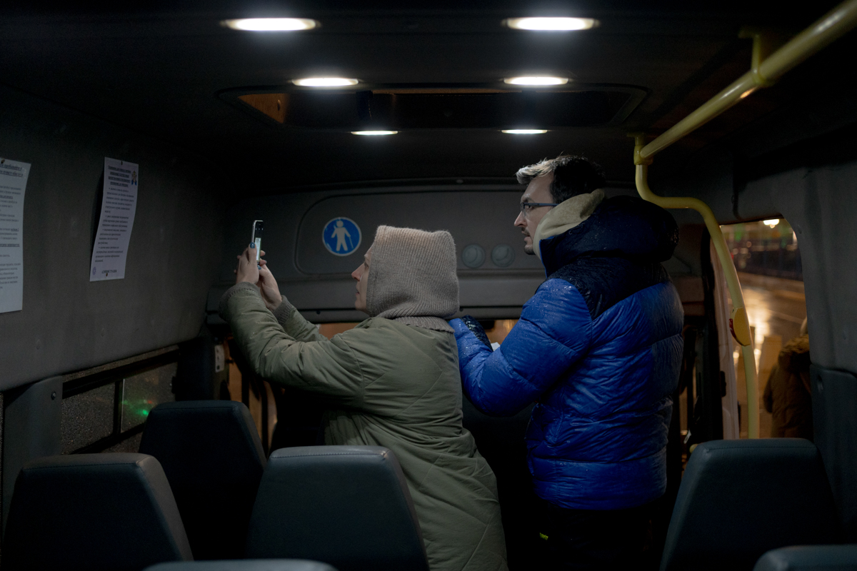 Сквозь запотевшие окна микроавтобуса мигают огни вечернего города. Наше расчетное время в пути до первого пункта обогрева — полтора часа. Там нас уже ждут представители ведомств.